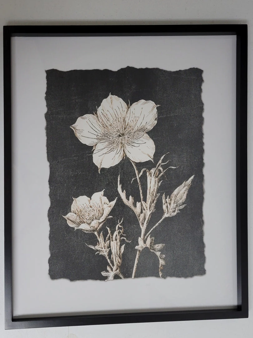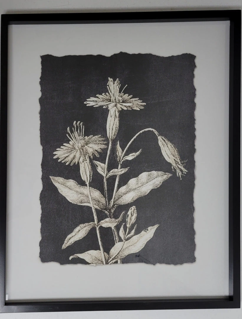 Black & White frame, background, and surround; featuring cream botanicals with a slight sepia tone etching for detail.