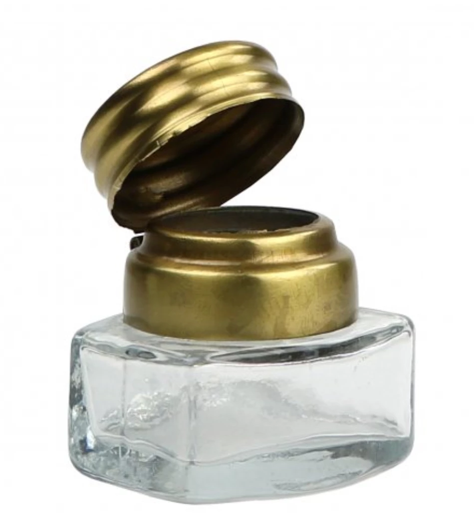 Glass with brass cap.
