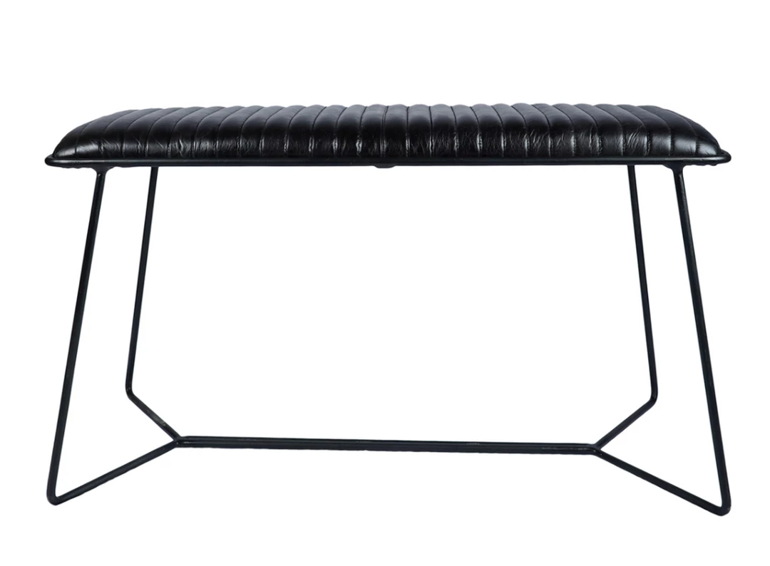 Simplicity meets sophistication with this update on the classic ottoman. Made of high-quality black-stitched leather and a solid iron frame, it’s great fit for today’s understated home or office décor. Â
