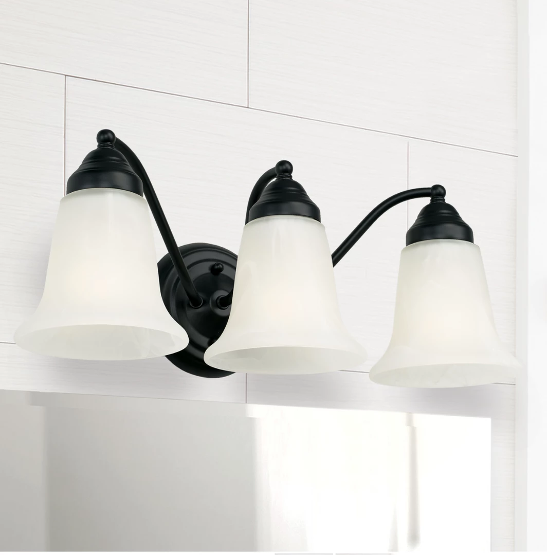 Traditional and timeless, the 3-Light Alabaster Vanity has evokes classic charm. Multiple finish options make this fixture easy to use with a variety of styles. Vanity is also available in a 2-Light option.