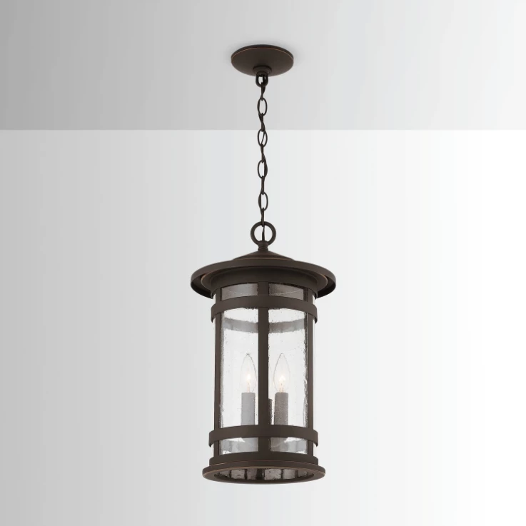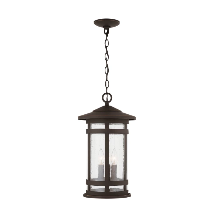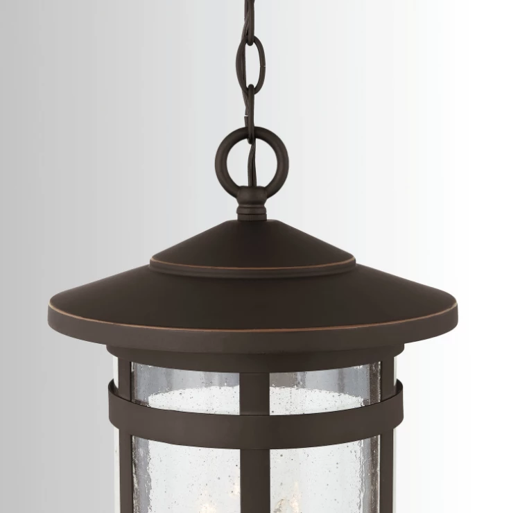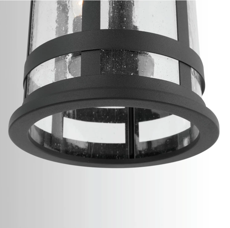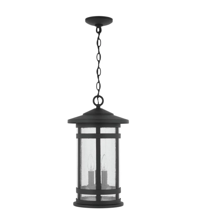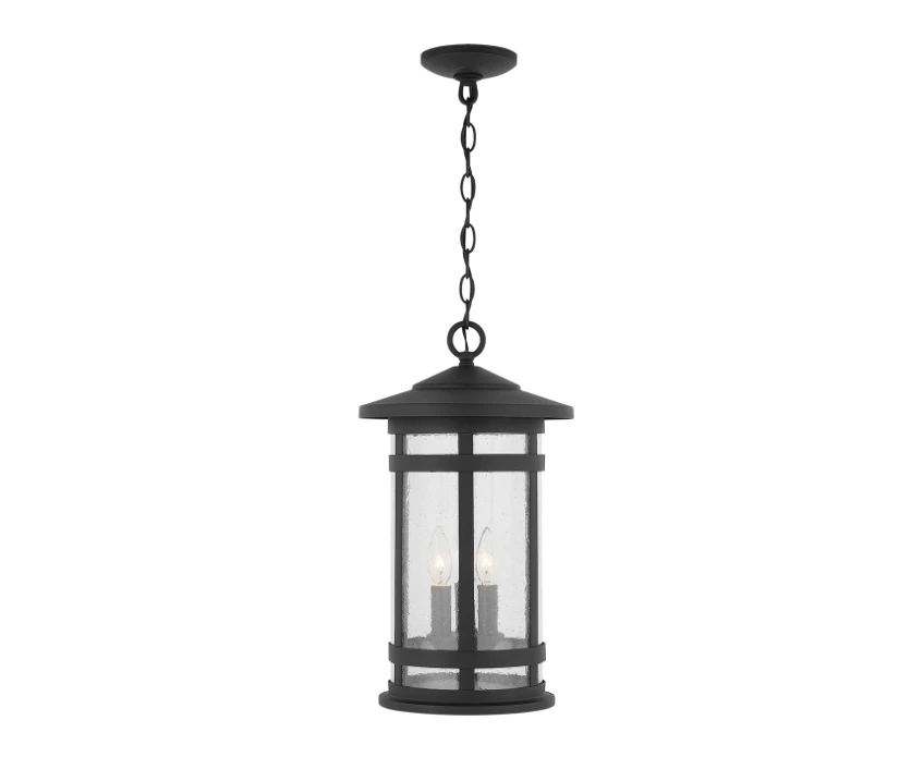 3 light outdoor hanging lantern with Black finish and Antiqued Seeded glass
