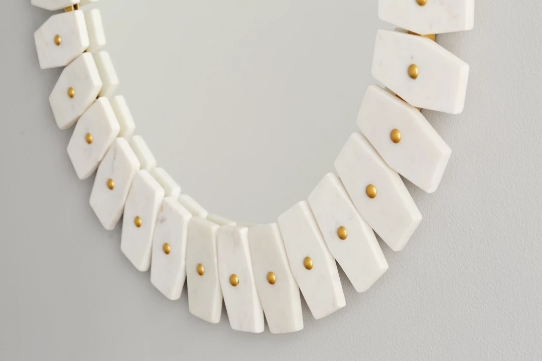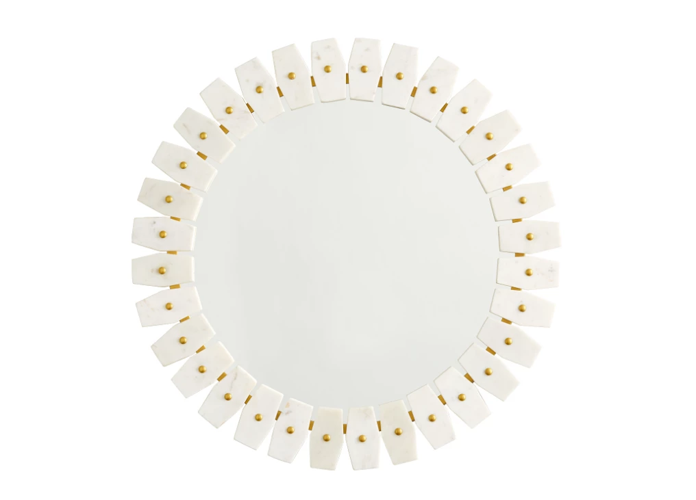 Mirror with White Marble with Brushed Brass Metal finish.