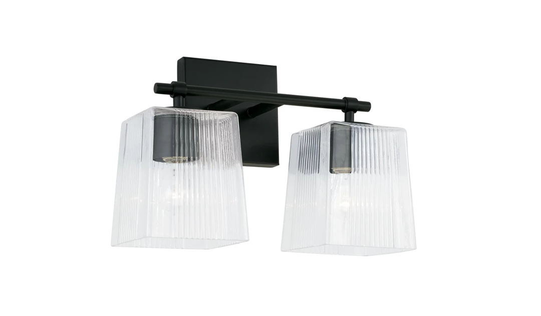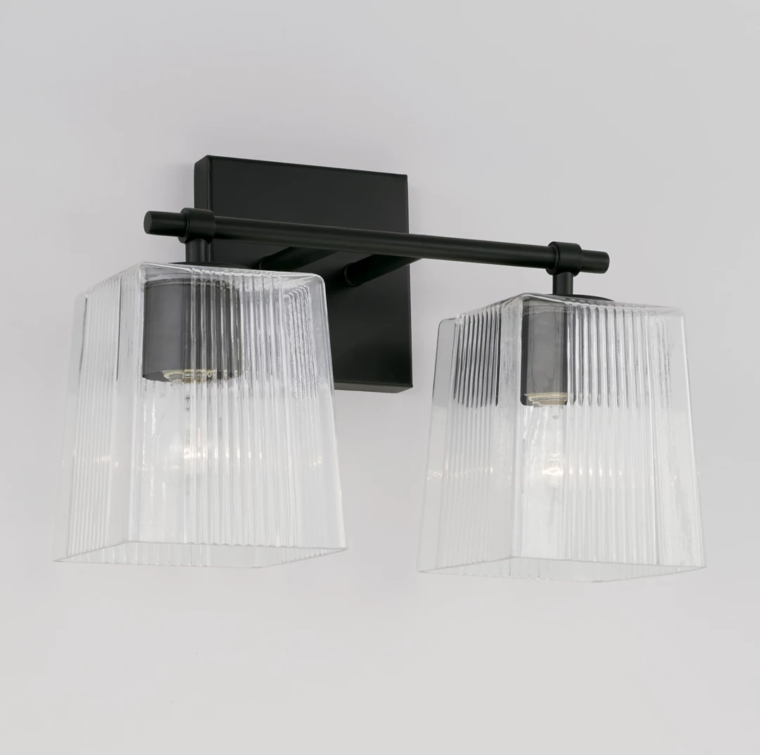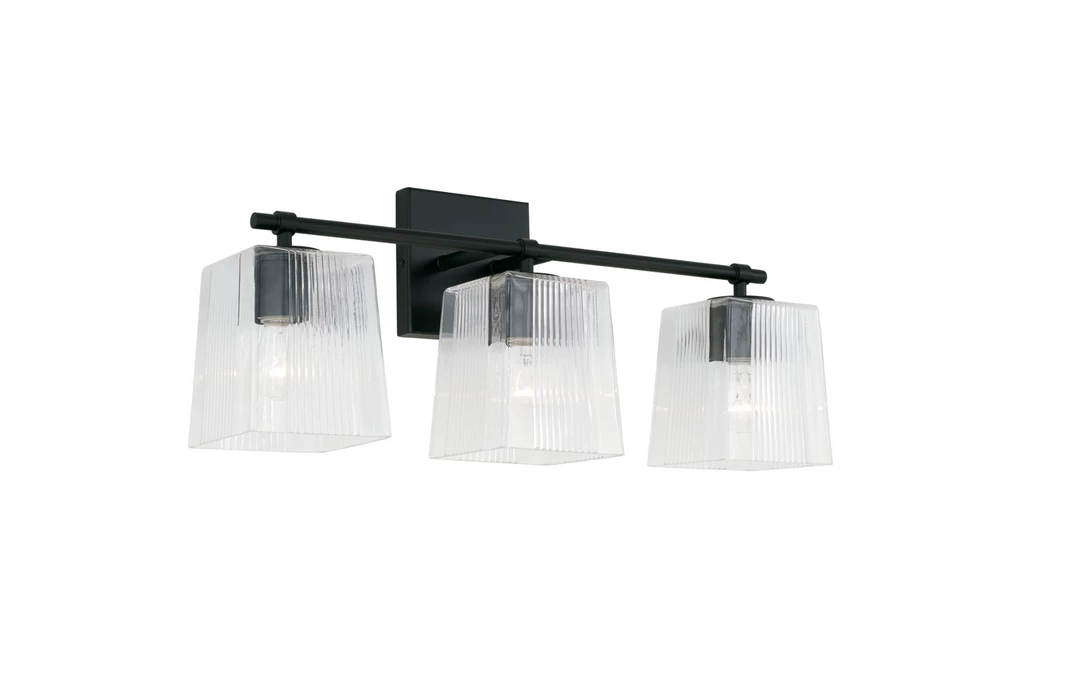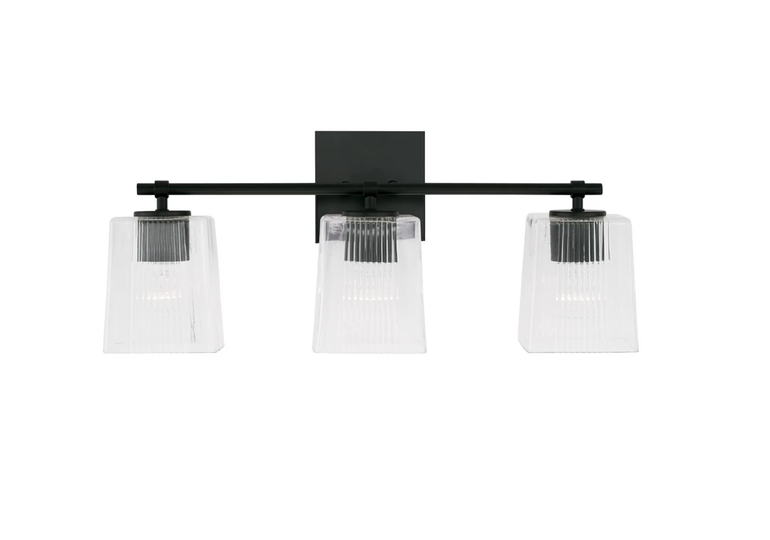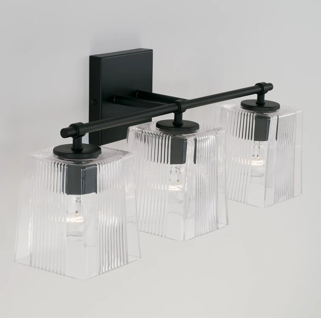 The chic fluted details on the Sandra Vanity Light create character and visual interest. The tapered glass silhouette accented by the matte black finish adds a stunning yet simple sparkle to any space.