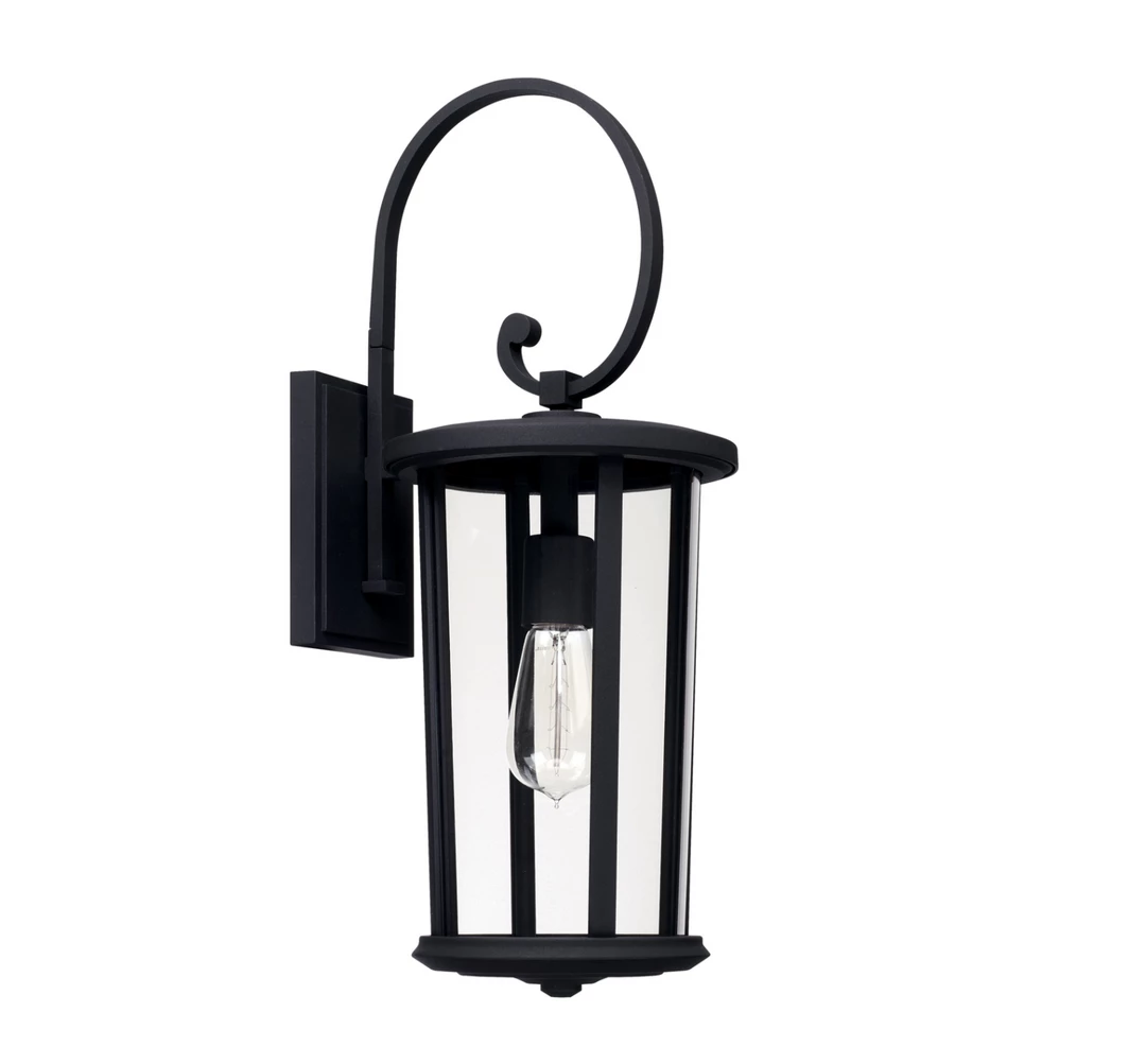 1 light outdoor wall lantern with Black finish and clear glass.