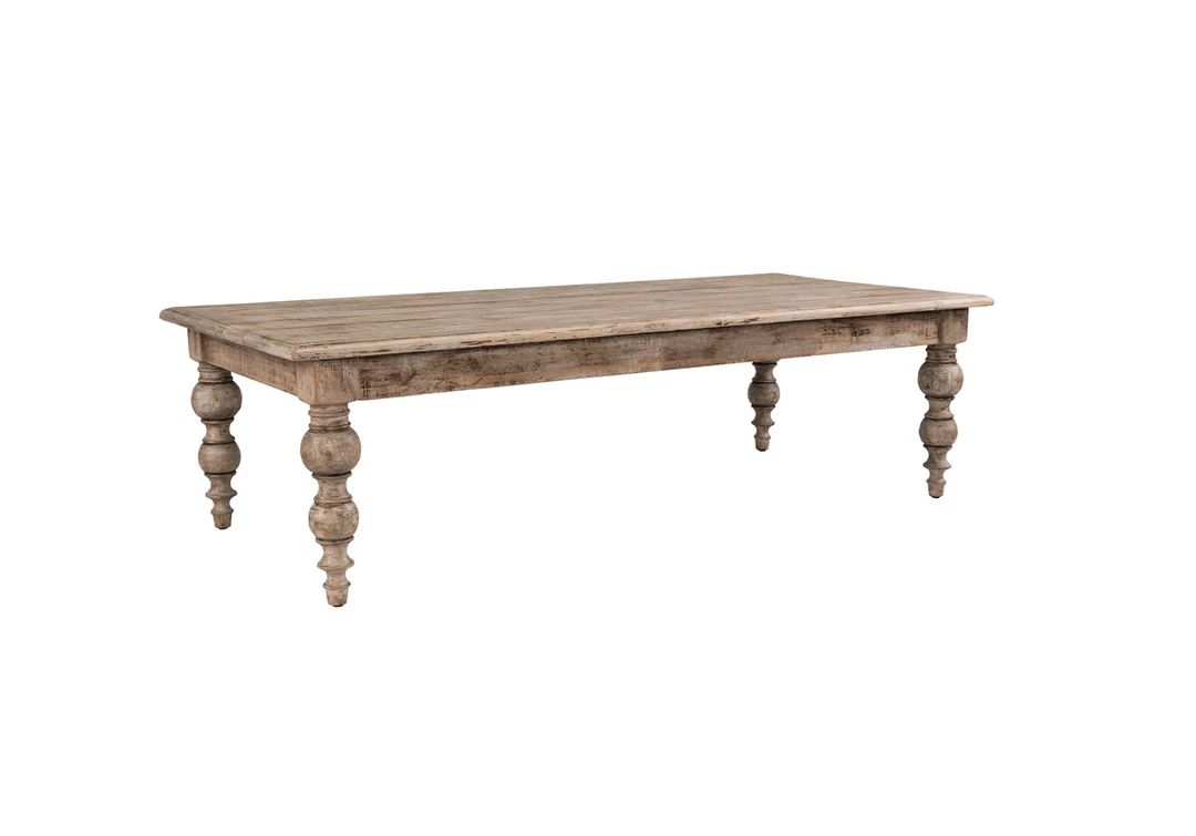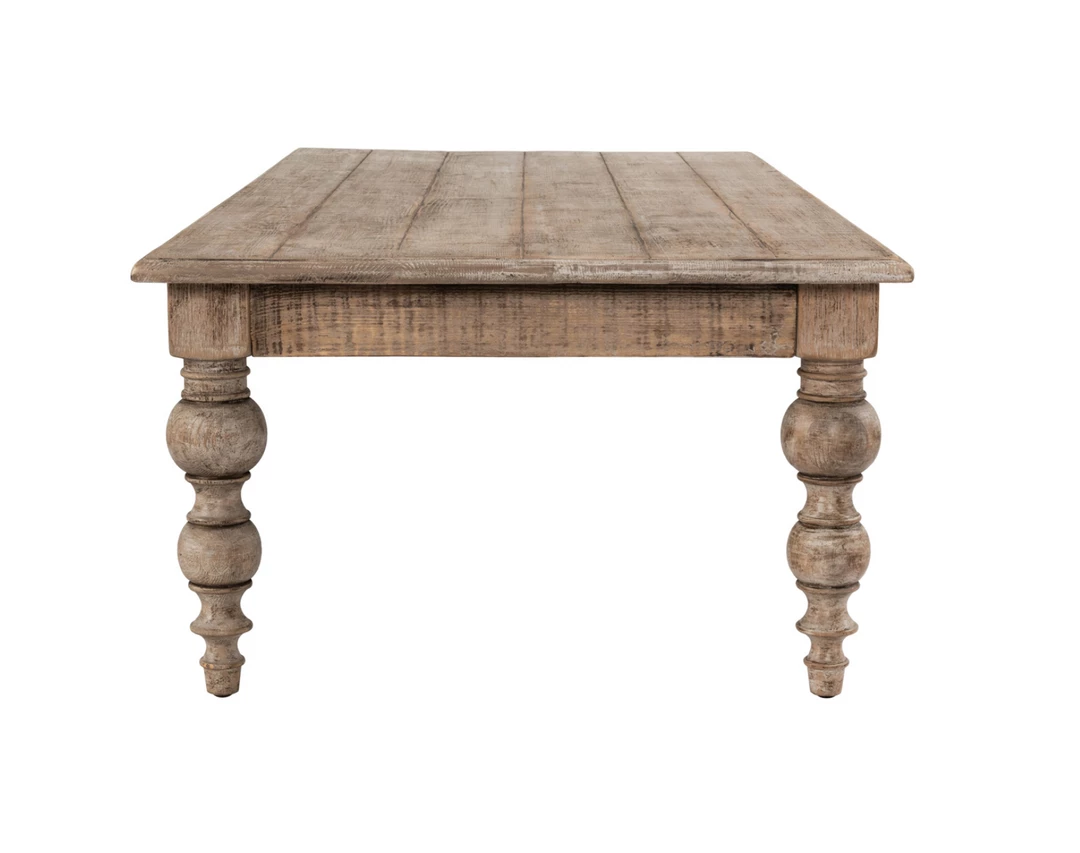 Whitewashed reclaimed pine wood and a classic design give this coffee table a timeless look that adds warmth and character to any space.