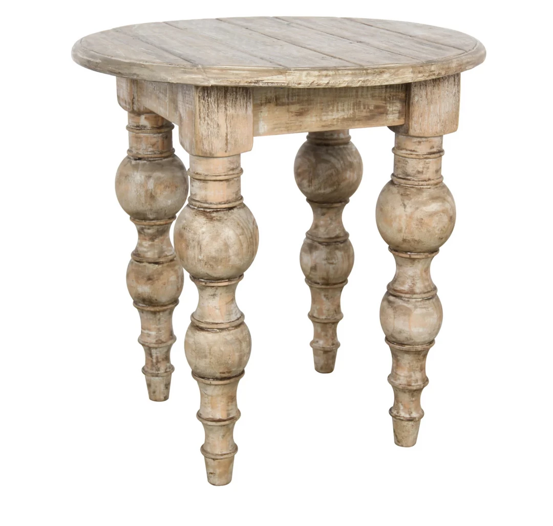 Whitewashed reclaimed pine wood and a classic design give this end table a timeless look that adds warmth and character to any space.