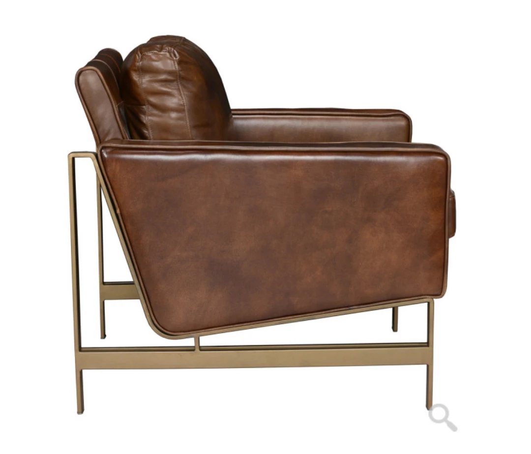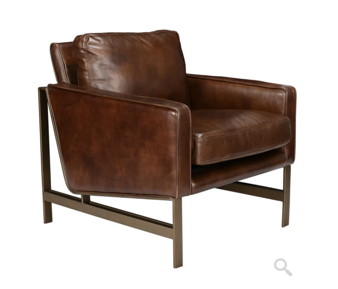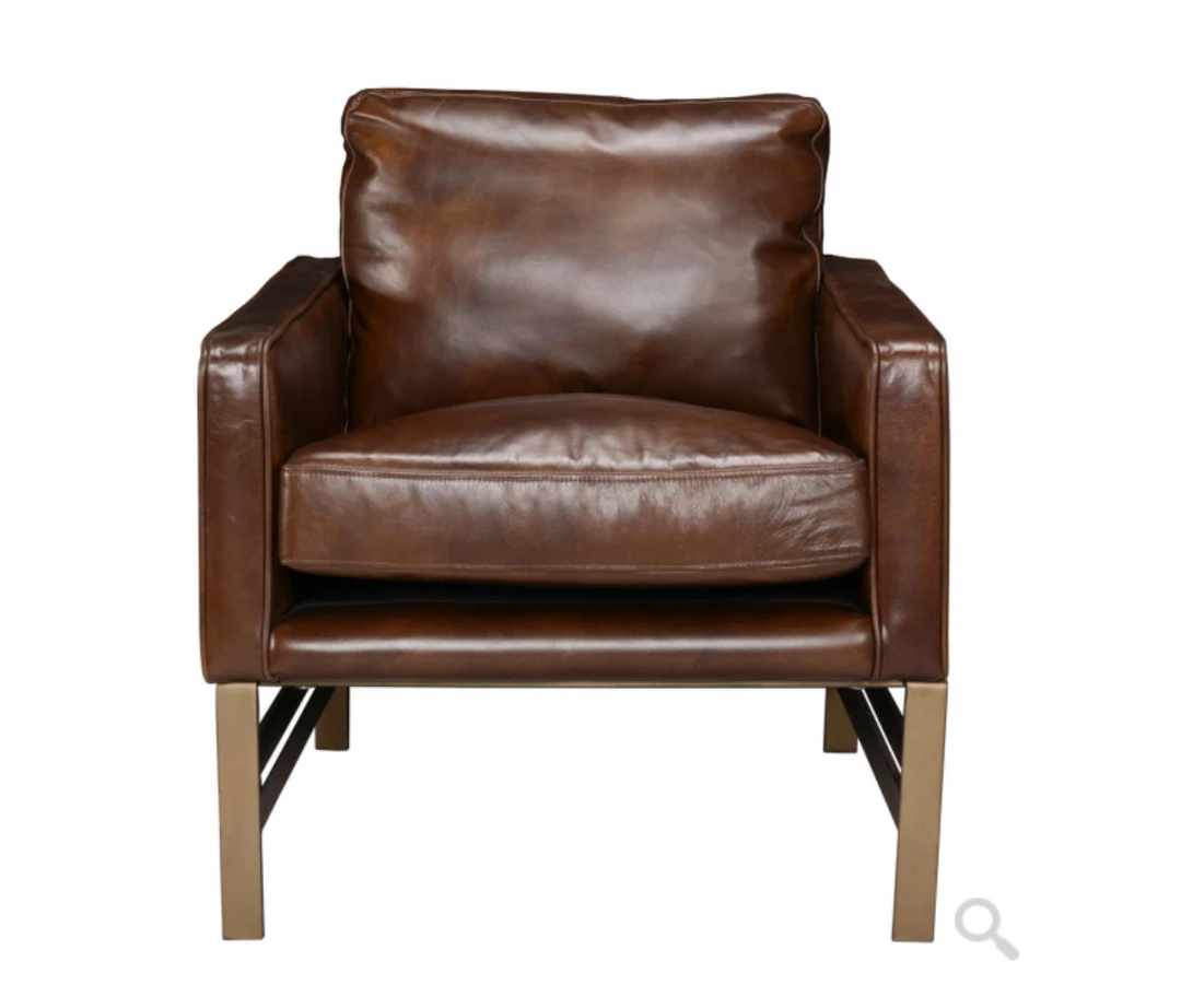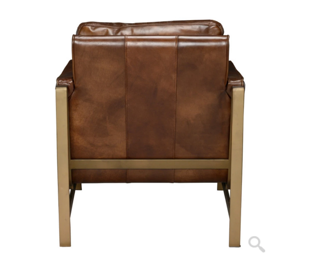 The Chazzie Club Chair is upholstered in top grain leather to provide a plush and premium material to this understated seating option. Its iron base is treated with a brass finish that complements the leather and adds to the chair’s luxe feel. Elegant forms and classic materials combine to make the Chazzie Club Chair a stunning piece for any space.