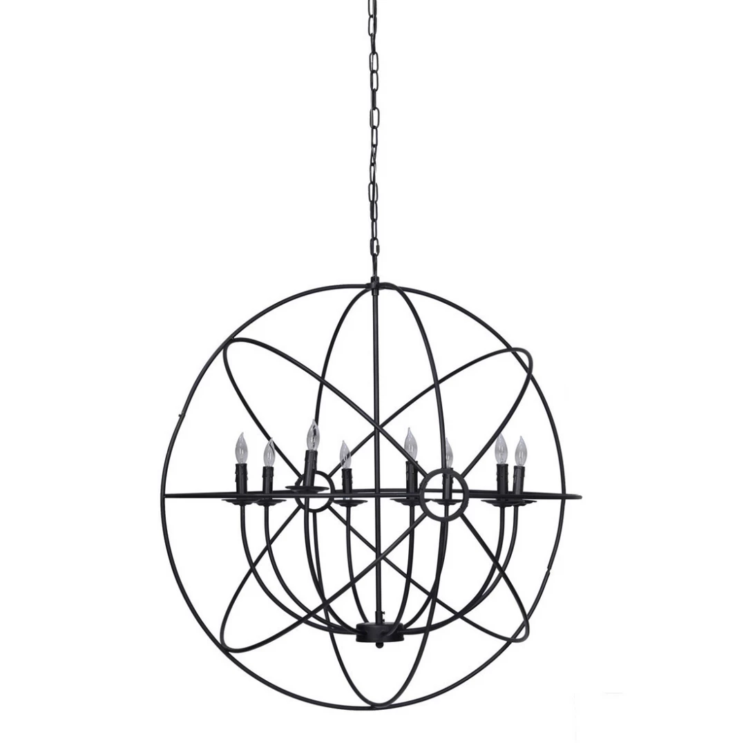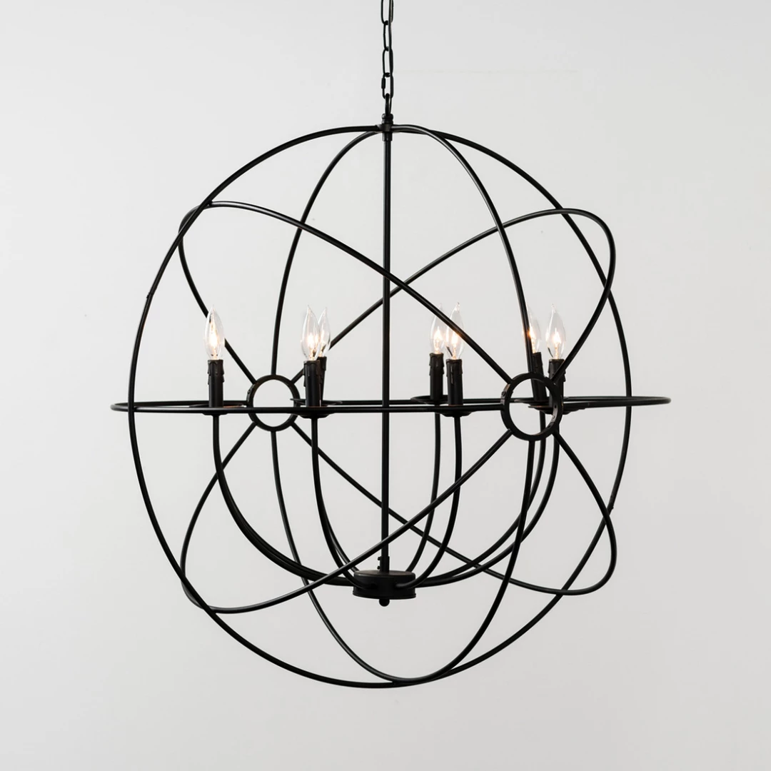Our Derince Chandelier captivates in any room of the home thanks to its unique circular design. Intersecting iron rings create an eye-catching pattern around an array of bulbs that emit just the right amount of lighting.