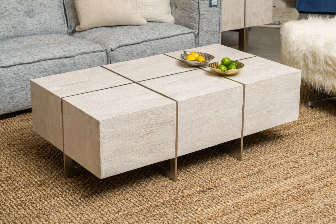 Our Desmond Coffee Table is both stylish and sustainable, using plantation-grown mango wood with a solid iron base in a nickel finish. The strict lines of the table are softened by the organic forms and textures of the mango wood that have been treated with a light wash. With understated style and sustainable materials, the Desmond Coffee Table is an attractive option that will enhance your space.