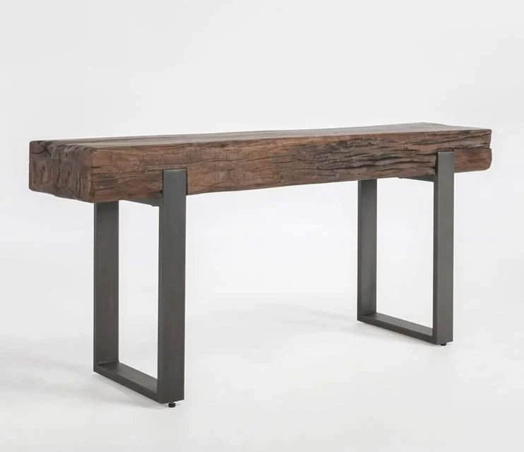 The Eduardo Console Table is made from Reclaimed Oak with metal legs. Each one is one of a kind and a unique piece.Â