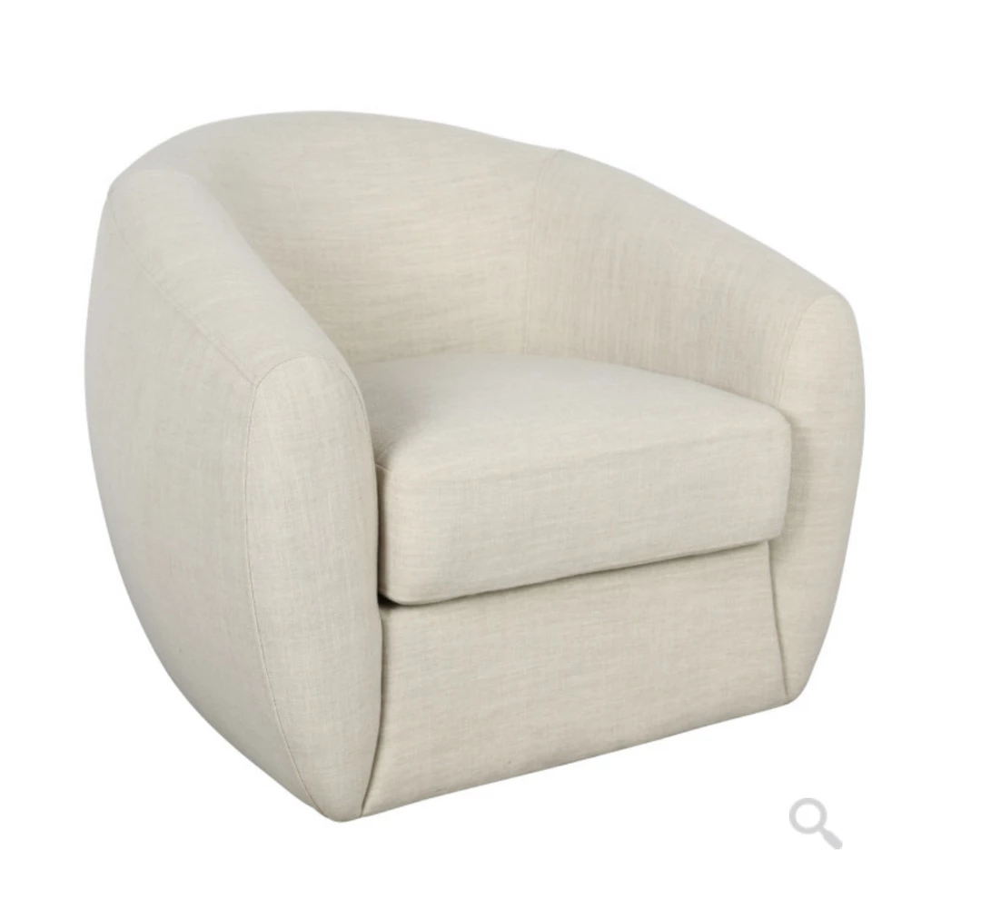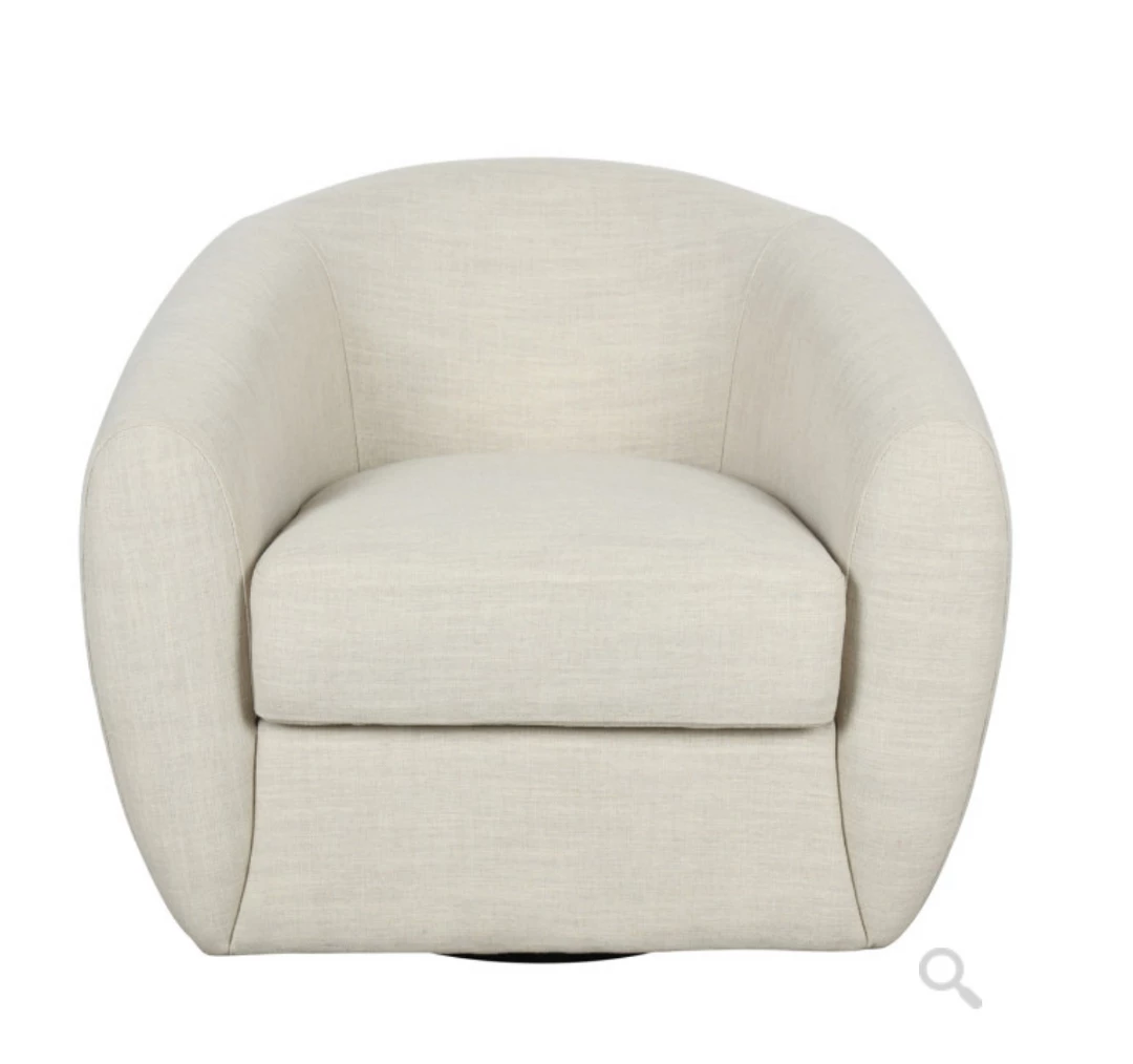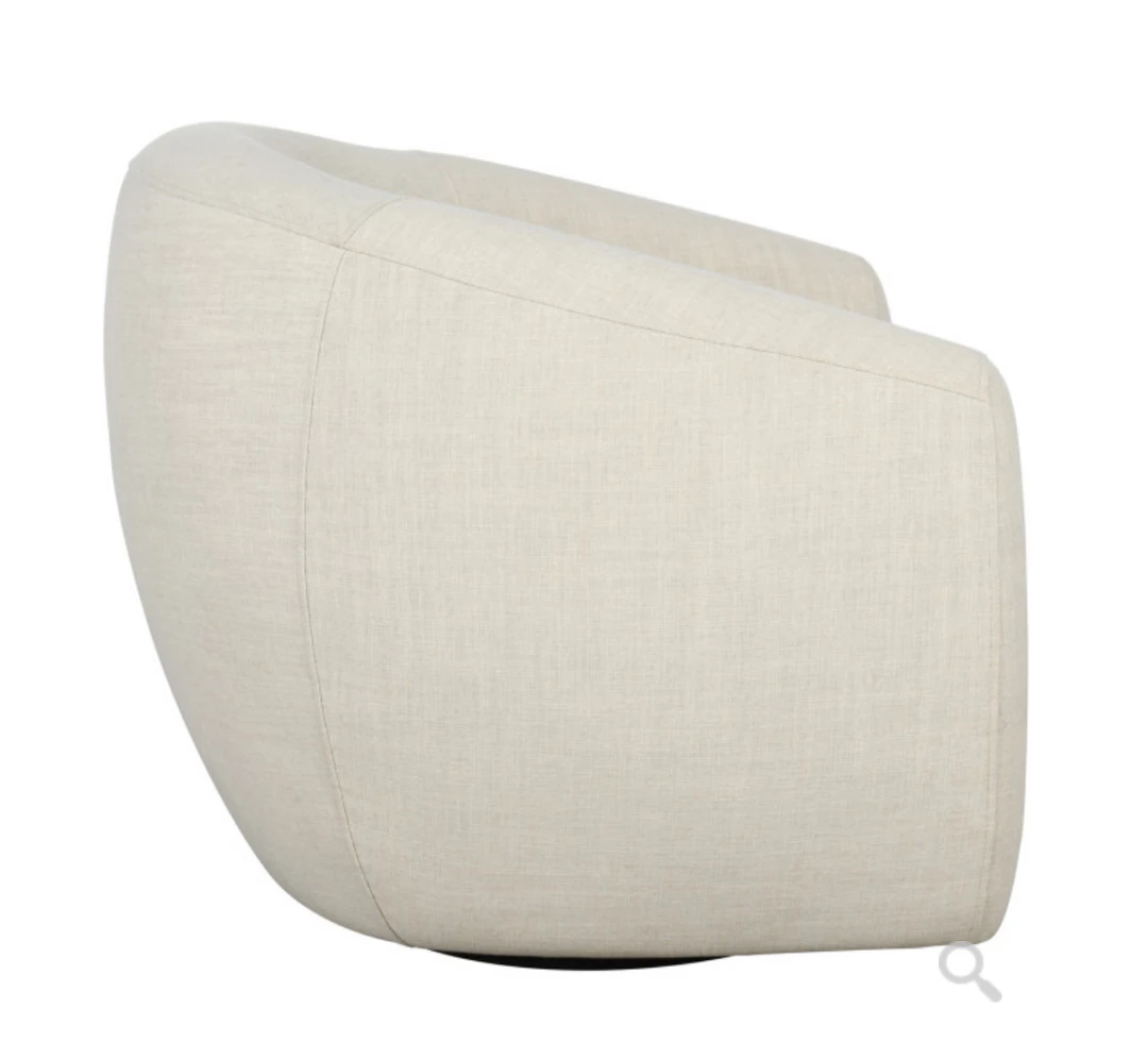 With its curved barrel shape and airy polyester fabric, this accent chair refreshes any space with a crisp yet inviting look.