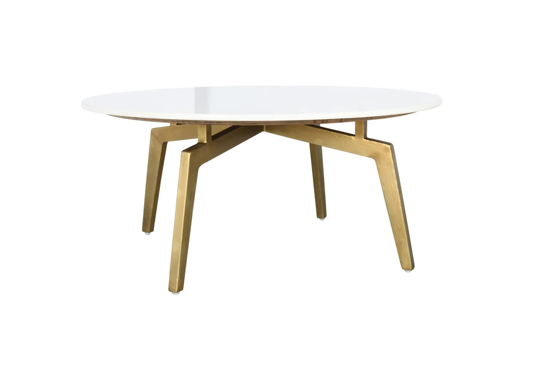 Brighten your room with this gleaming coffee table featuring a creamy white marble top and iron base finished in gold.