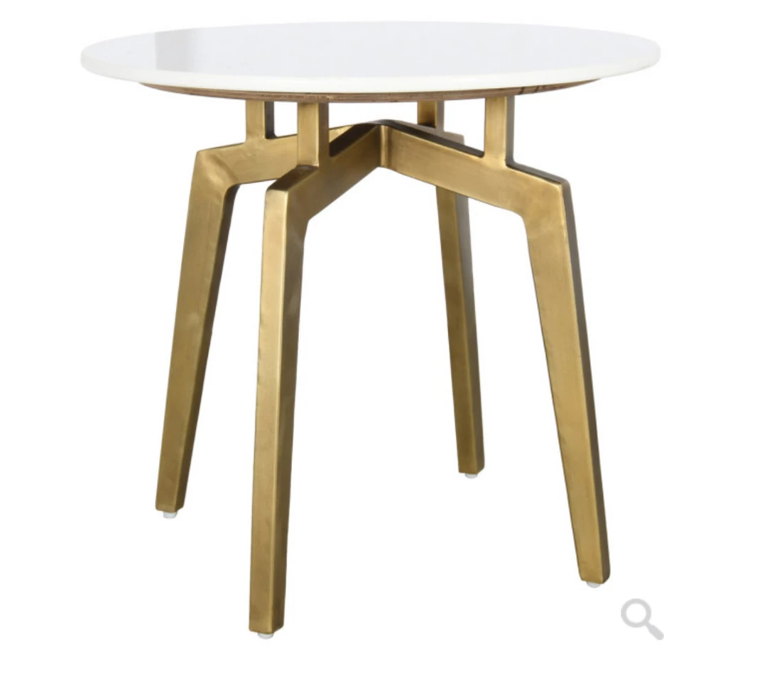 Brighten your room with this gleaming end table featuring a creamy white marble top and iron base finished in gold.