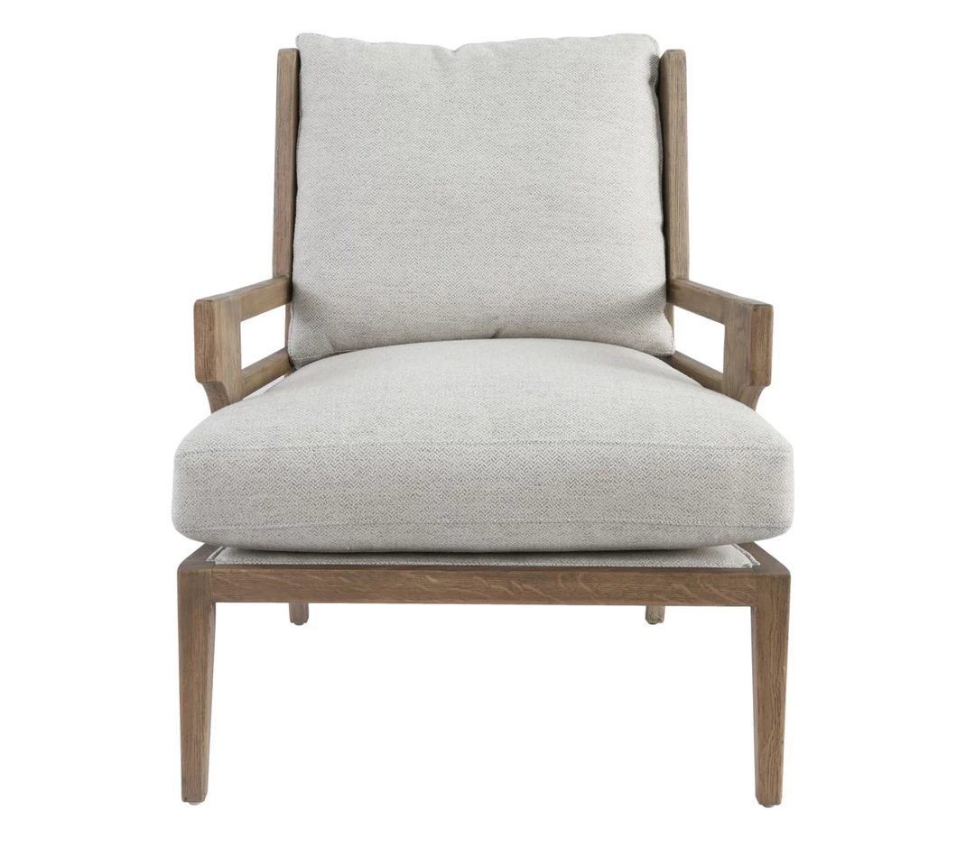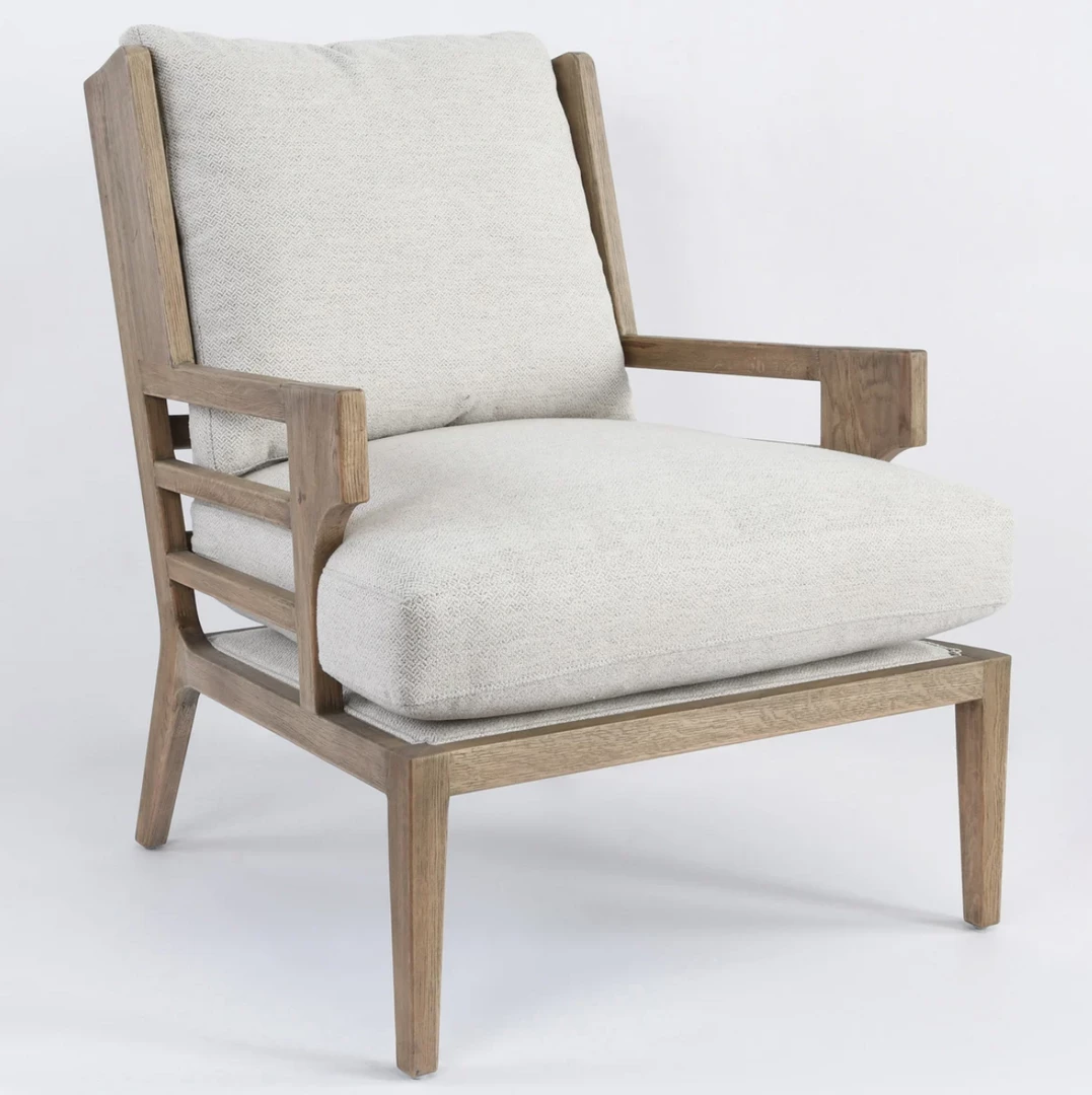 Blending classic design elements in a contemporary way, this accent chair echoes a traditional ladderback style and includes plush polyester cushions.