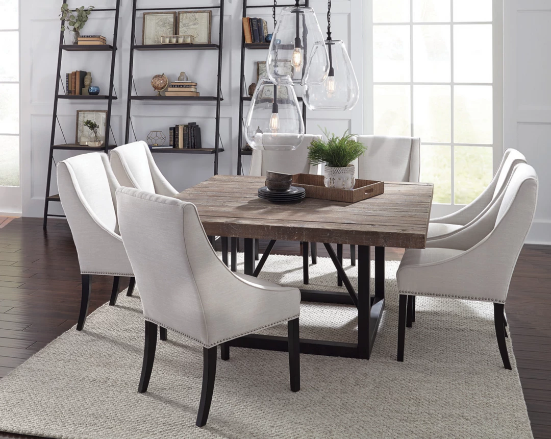 Our artisans achieve the rustic look of our Messina Square Dining Table by coupling sustainable, plantation-grown pine wood with durable iron. The result is beautifully handcrafted mixed media furniture that adds warmth to any dining room.