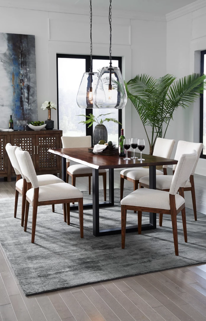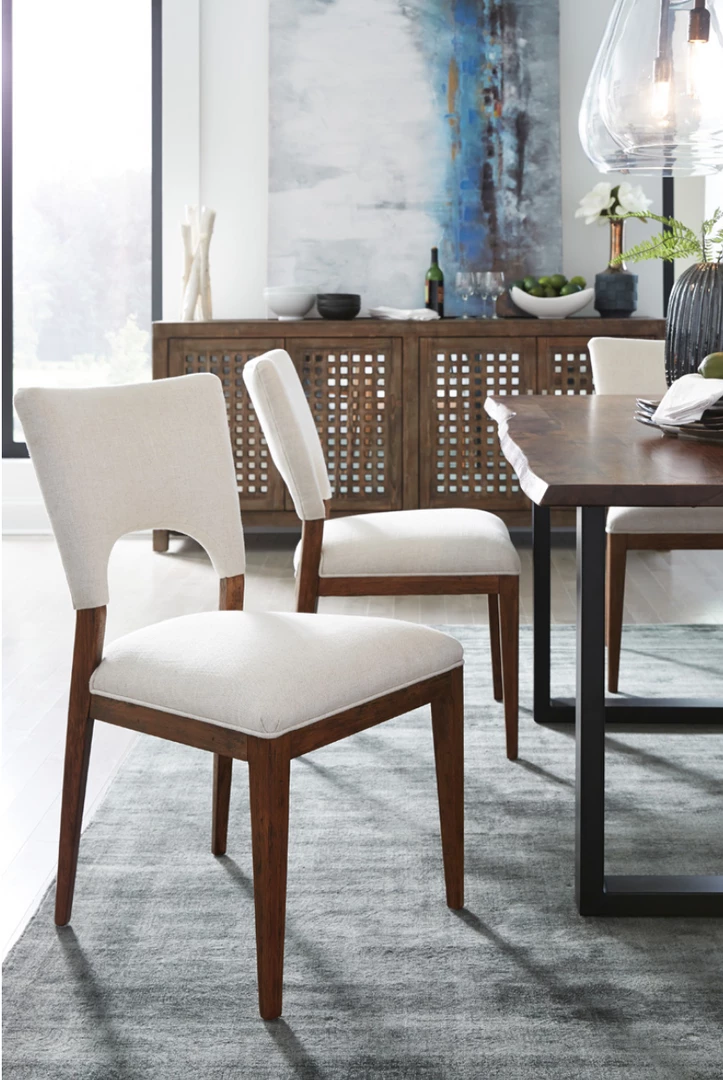 Whether your style is mid century or just modern, the clean lines and neutral upholstery of this dining chair pull your room together.