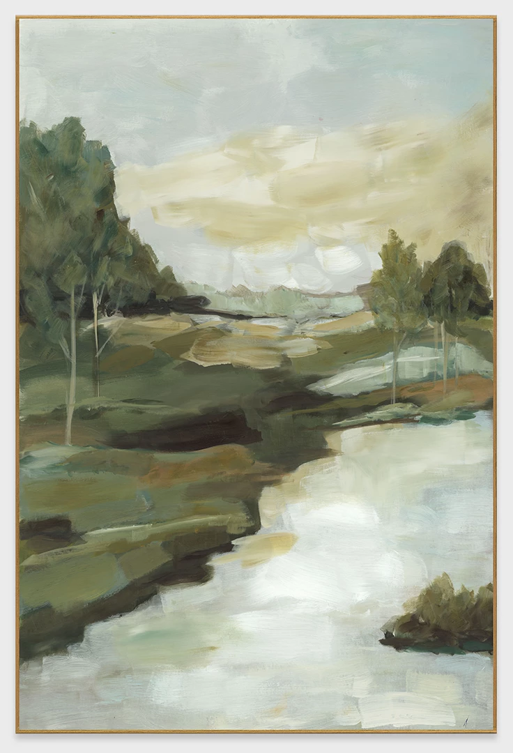 Gaze out at the horizon in this sweeping landscape and enjoy an infusion of serene nature. Earth tones are used throughout this modern realistic, textured print for a soothing finished work.