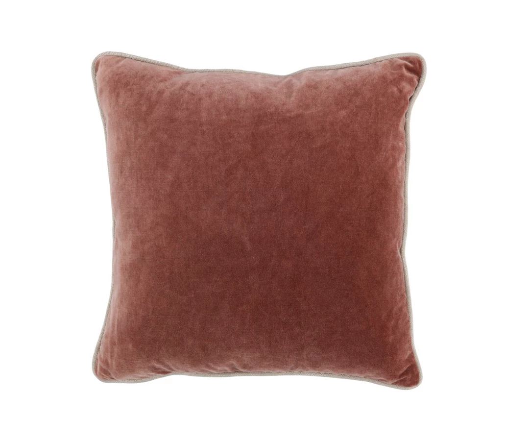 Give your space a colorful refresh with this 18×18Â auburn pillow with contrasting piping. Lush, pre-washed velvet lends a vintage look with a sumptuous hand feel.