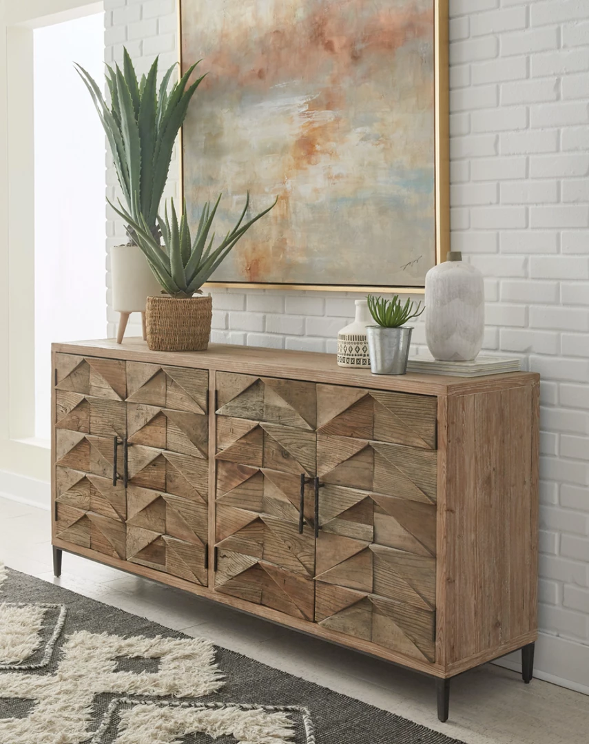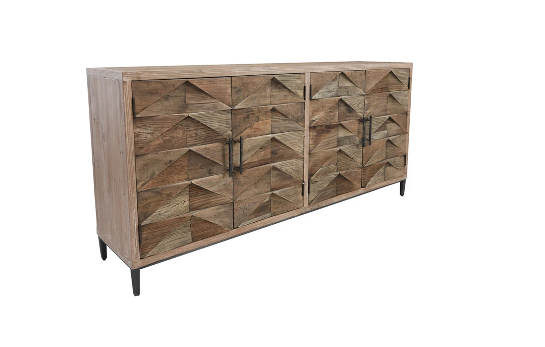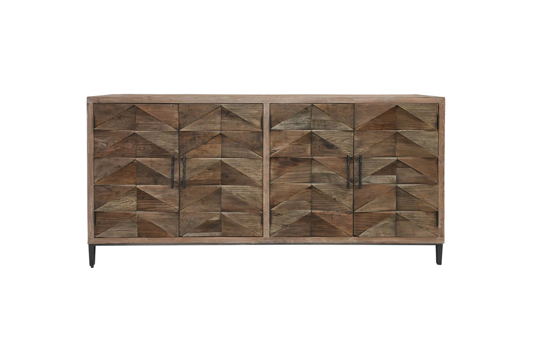 Create a striking effect in your space with this cleverly designed sideboard featuring unexpected dimension and texture. Constructed of reclaimed pine