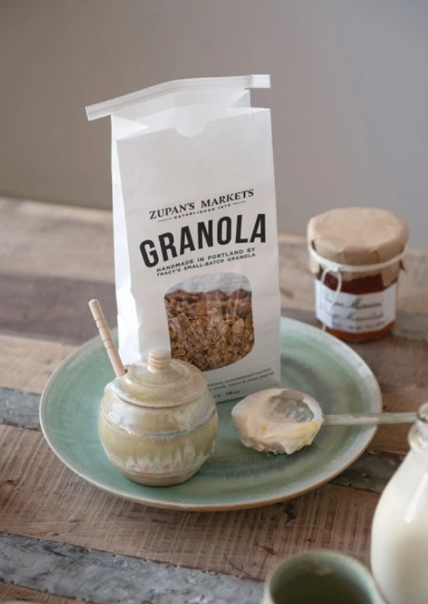 These glazed honey pot is the perfect addition to your coffee + tea set up. Complete with a honeycomb dipper, it is stylish and functional!