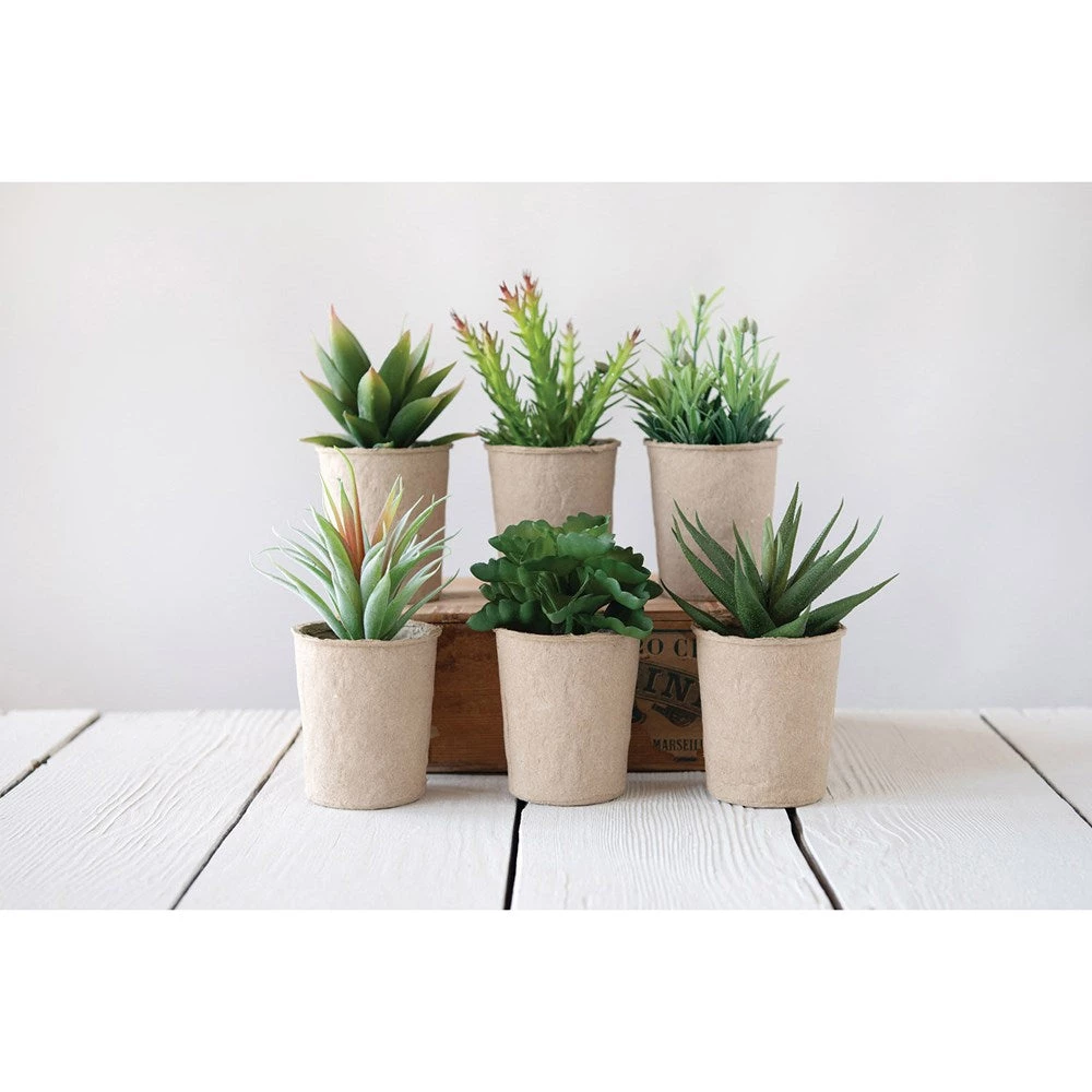 Approximately 7-1/2″H Faux Succulent in Paper Pot, each one varies