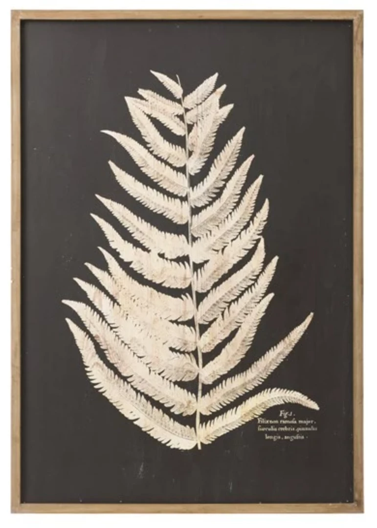 Wood Framed Wall Decor with Laser Cut Fern Leaf