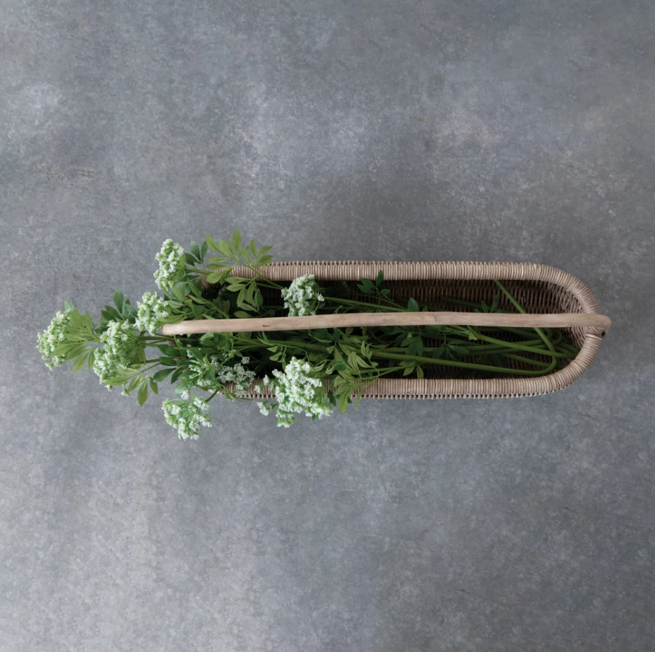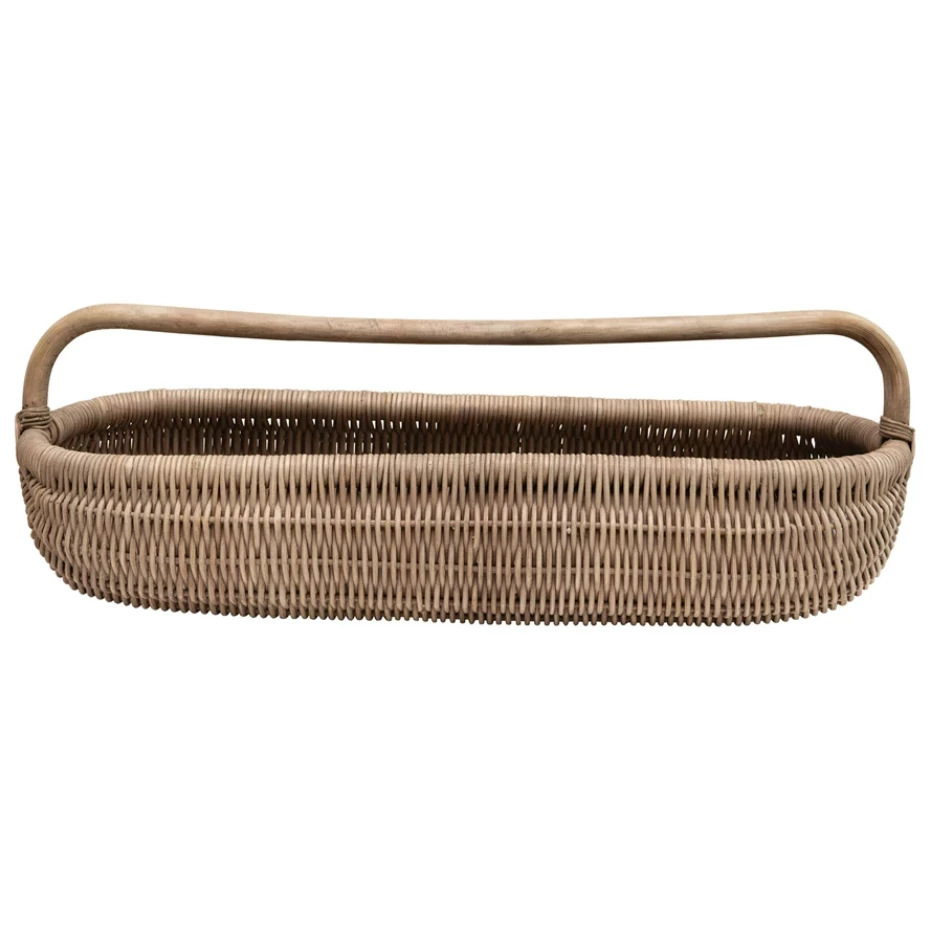 This artistically crafted hand-woven rattan basket with a handle has a beautiful and natural finish. A charming basket that will be great for collecting fresh flowers or herbs. It is perfect for kitchens and living rooms and complements any style.