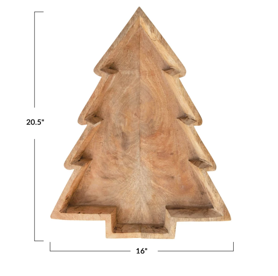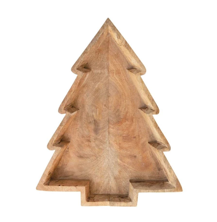 This tray is perfect for pulling out every Christmas season. Made out of mango wood, this tray comes in the shape of a Christmas tree and has a natural wood finish. This tray is perfect for displaying appetizers and desserts for friends and family during the holidays.