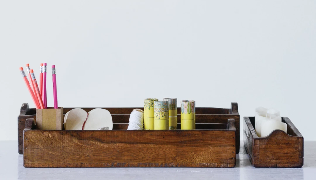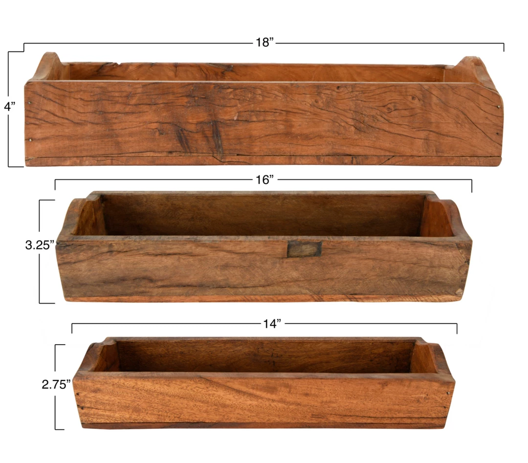 This set of decorative wood trays will make any setting extra special. You can set them side by side or place in different areas. Depending on which room you place them in, they would be great for office supplies, jewelry, potted plants or kitchen spices.