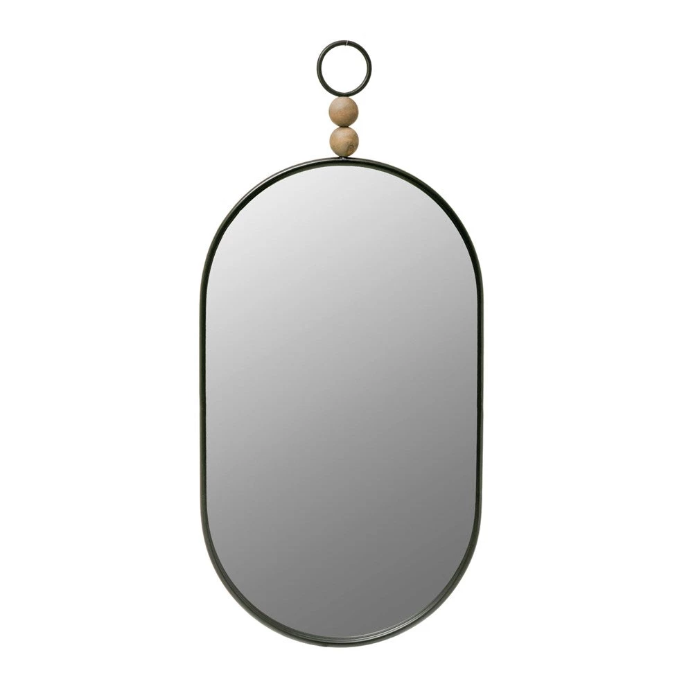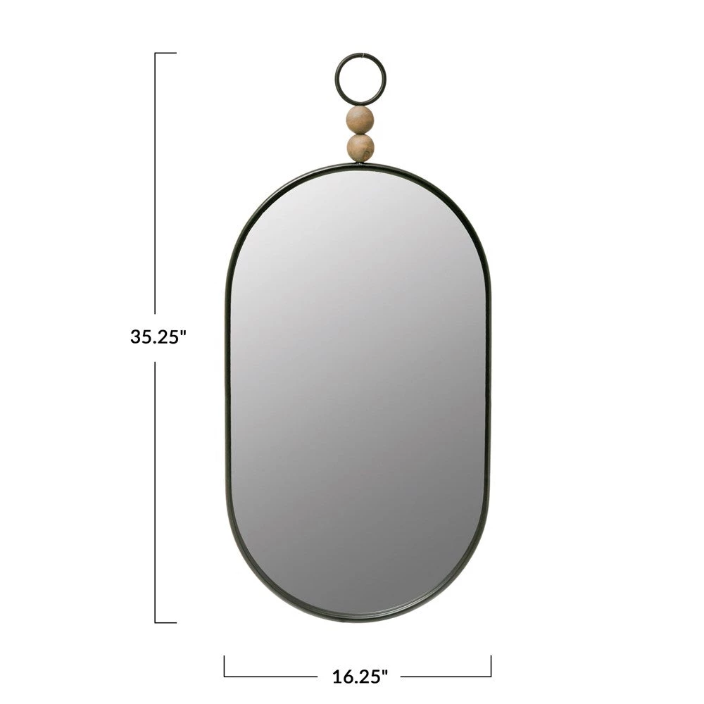 Oval Metal Framed Wall Mirror w/ Wood Beads (removable), Black