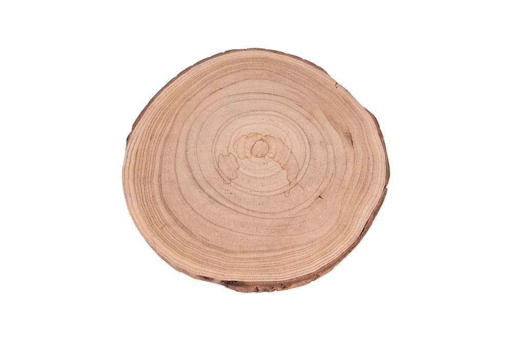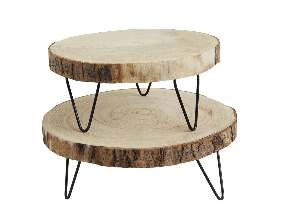 11″ Round Paulownia Wood Pedestal w/ Metal Legs (Each One Will Vary)