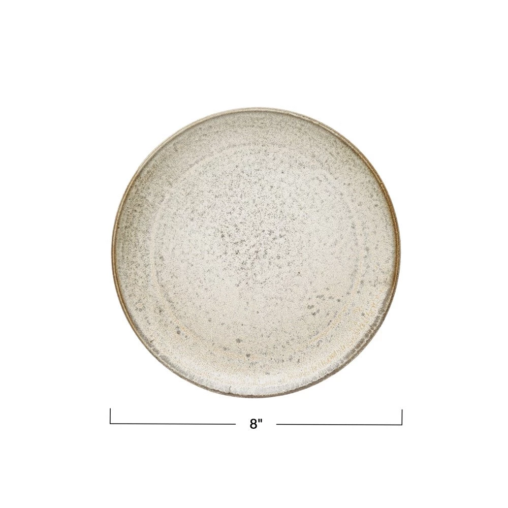 8″ Round Stoneware Plate, Reactive Glaze, Cream Color (Each One Will Vary)