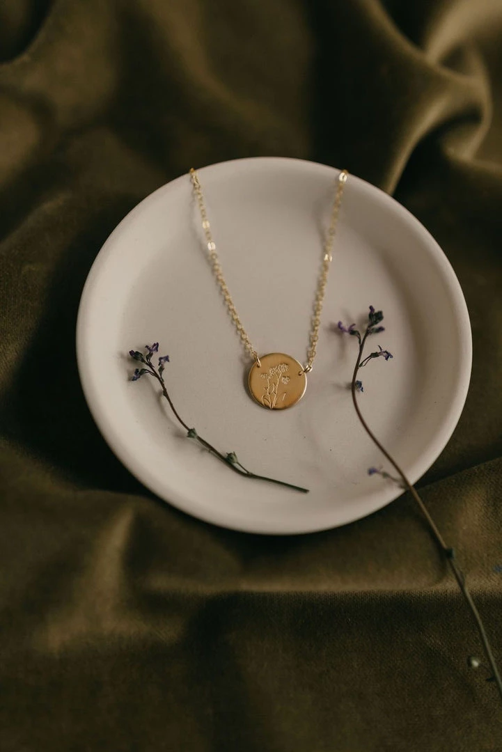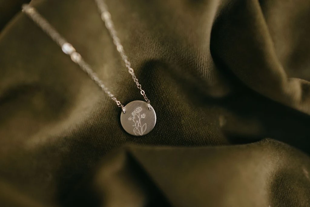 16mm hand-cut 20g disc with a beautiful heliotrope floral hand stamped into it.