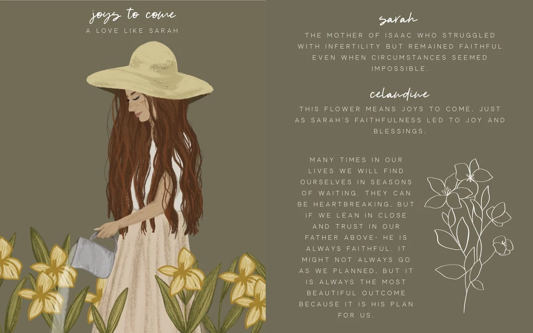 This flower means joys to come, just as Sarah’s faithfulness led to joy and blessings.