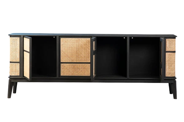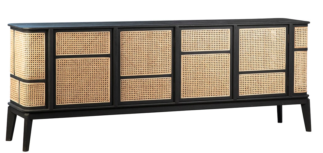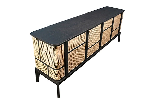 - ANTIQUE BLACK AND NATURAL RATTAN FINISH