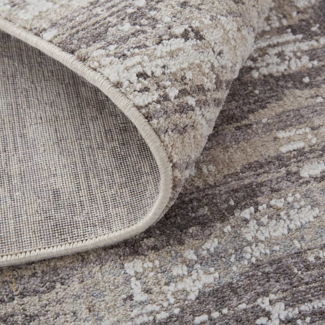 Trapse into an abstract world of snowy sands with the stunning Lennon Collection. Linear, abstract, and cross-hatched designs intersect for a delicately distressed look. Each piece features a waterfall of gray and cream tones cascading effortlessly amidst soft bursts of rusted and cool blue hues. With minimal, comfortable designs, these neutral colorations tie any living or workspace aesthetic together in a subtle yet striking way. Lennon Collection pieces are machine-made in Turkey and maintain optimal durability in high traffic areas.