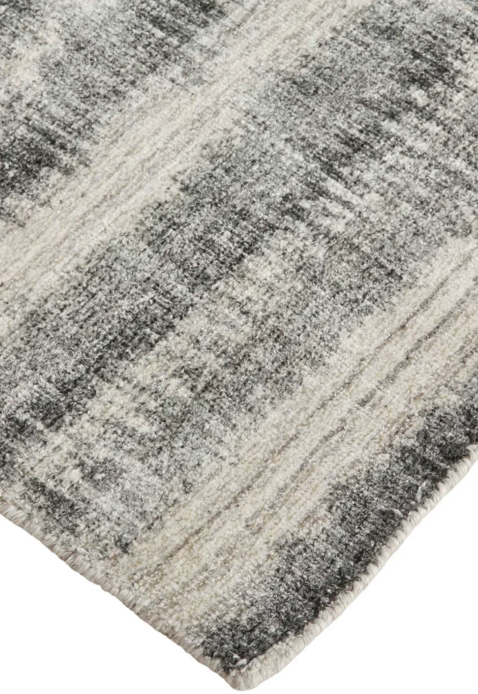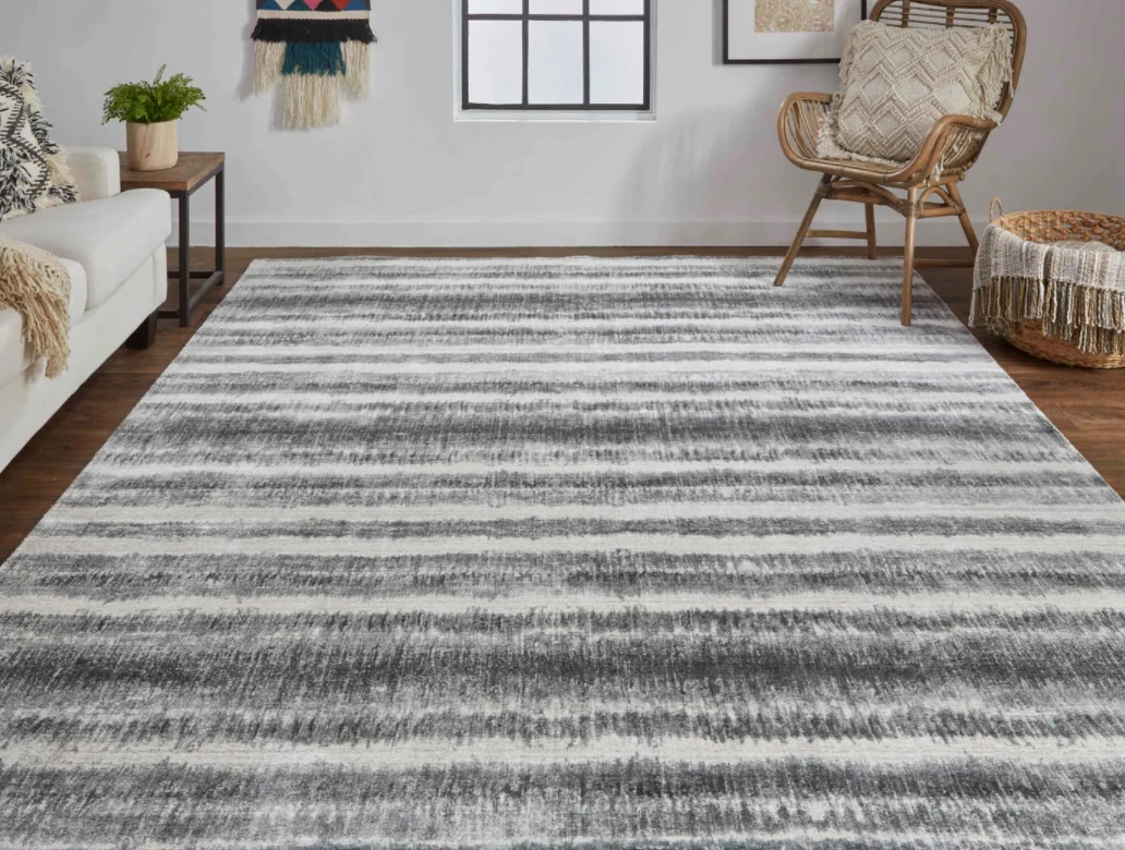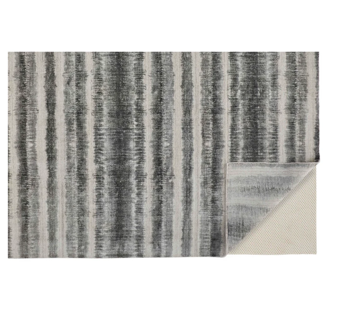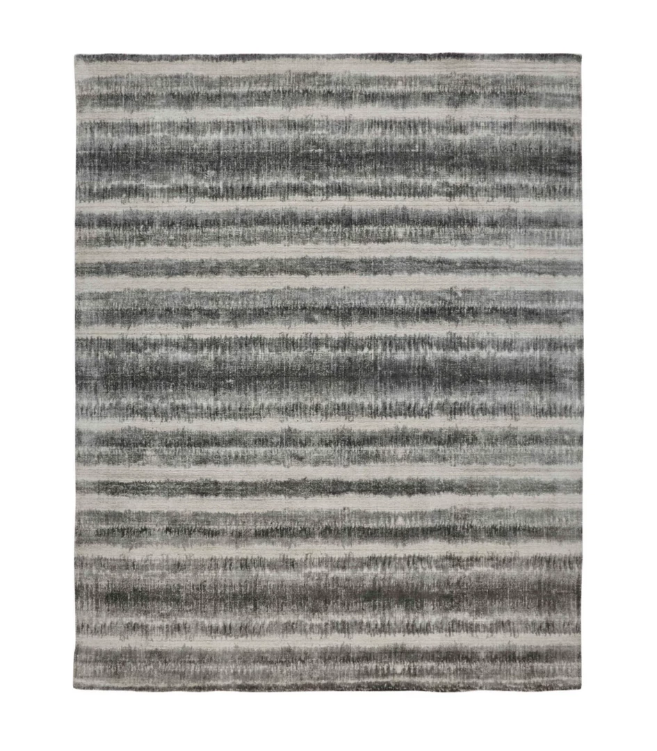 An artful spin on the classic stripe Mackay is a solid collection for creating movement within a room. Like abstract soundwaves its monochromatic gradients dance rhythmically across the low pile texture. Its luxurious sheen and distressed effects bring effortless style to any modern space.