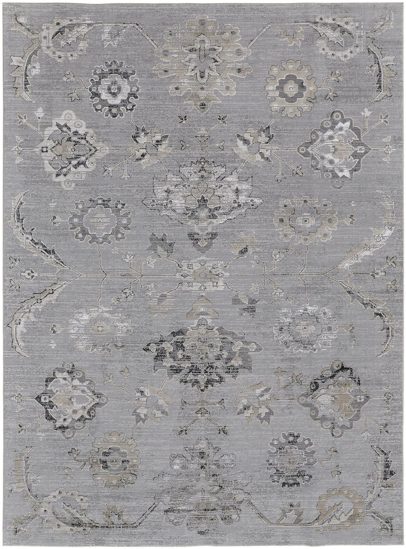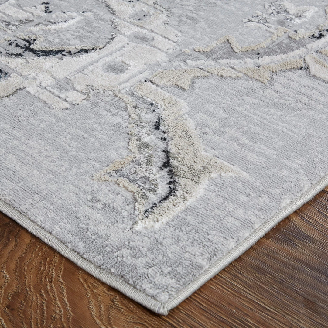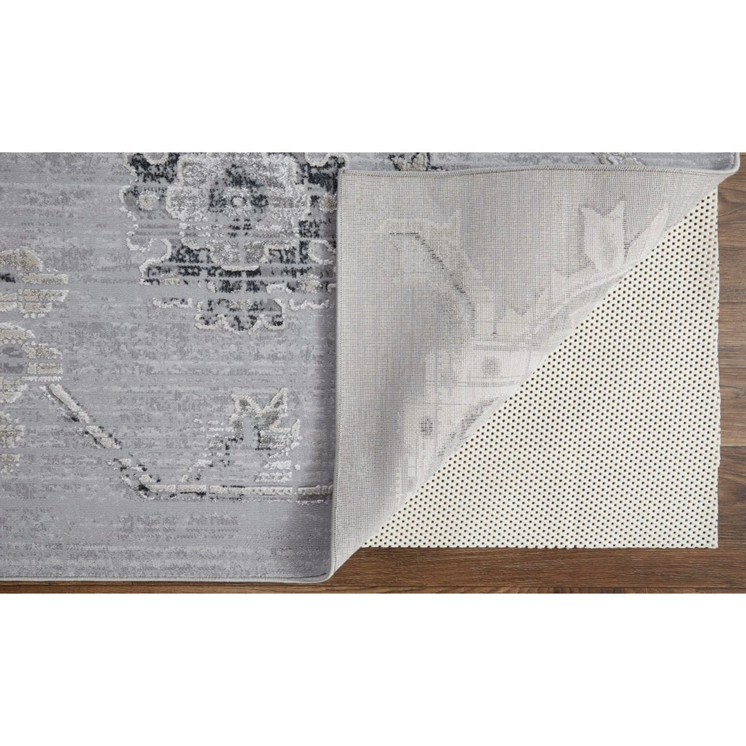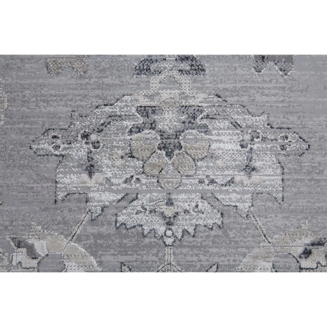 Resting at the cusp of charm and function, the stunning Macklaine collection boasts transitional distressed textures accented with subtle hints of black and silver metallic – effortlessly illuminating a soft tapestry of traditional designs. Each piece brushes a soothing blend of timeless beauty with cool cream tones for a muted yet modern glam aesthetic. Machine – woven for durability, the Macklaine collection adds the sought-after final touch to any living space.