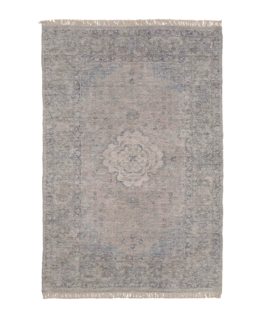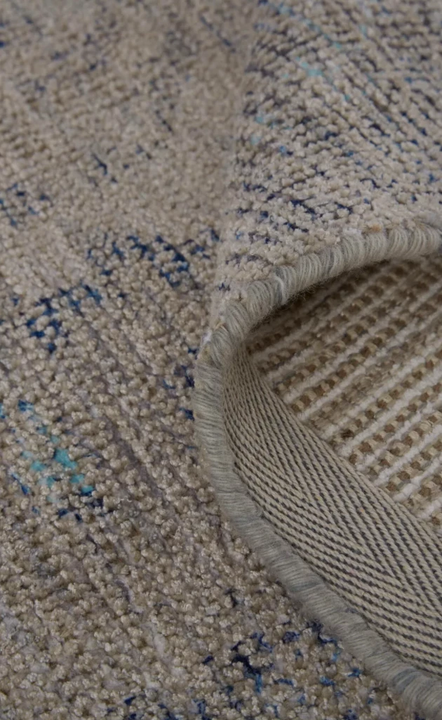 The pleasing melange of tonality and sheen is primarily what draws you in…then a beautiful arrangement of rustic Persian elements emerge. Employing a somewhat pointillistic approach, Caldwell takes an adept use of weaving to simultaneously erase, yet reveal the pattern existing within the skillfully-placed light and dark yarn systems. Point-by-point with warp and weft , Caldwell is a studied complexity that makes for effortless home design.