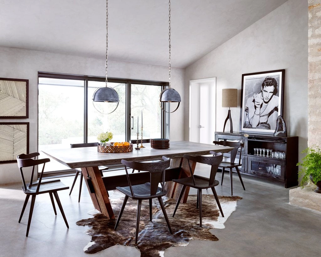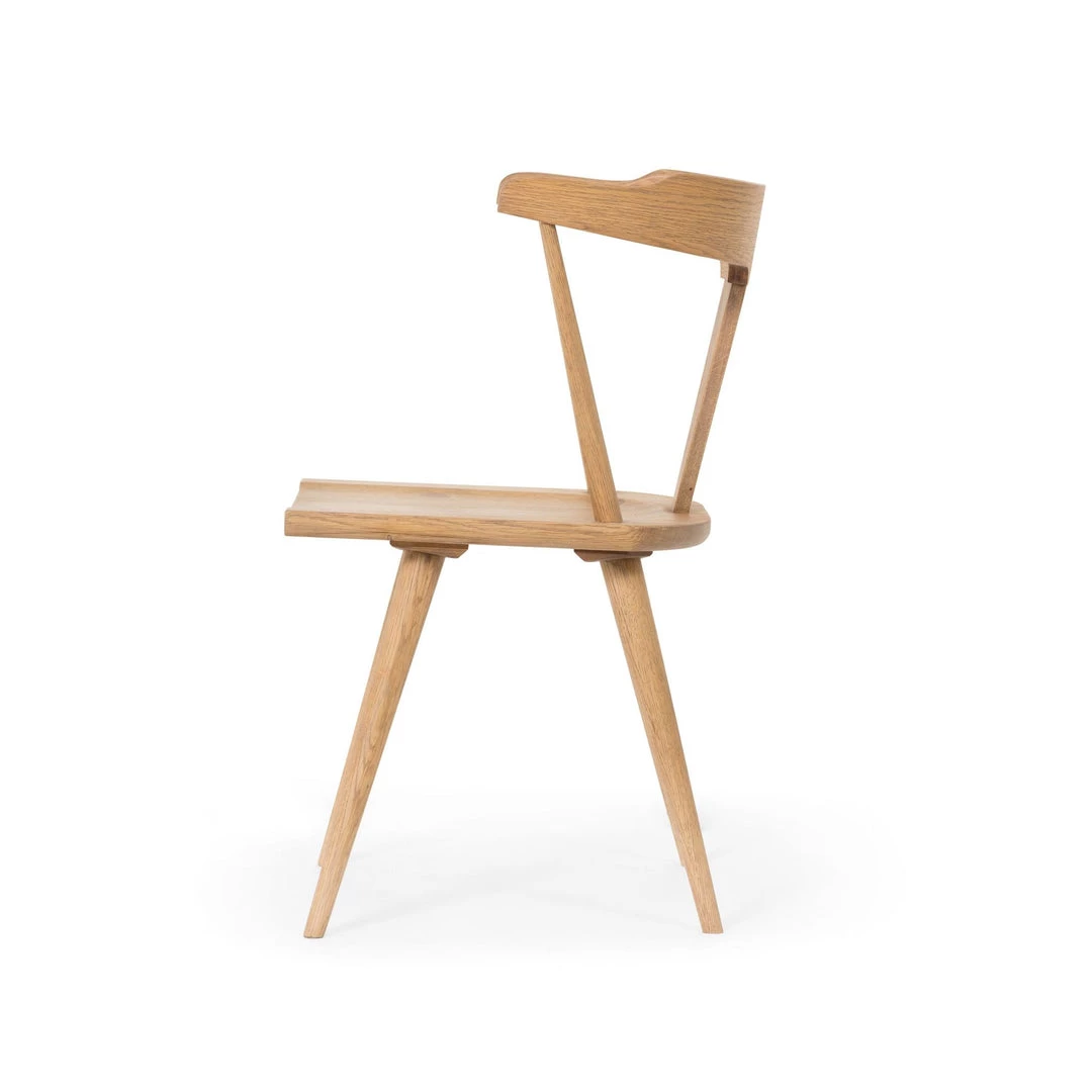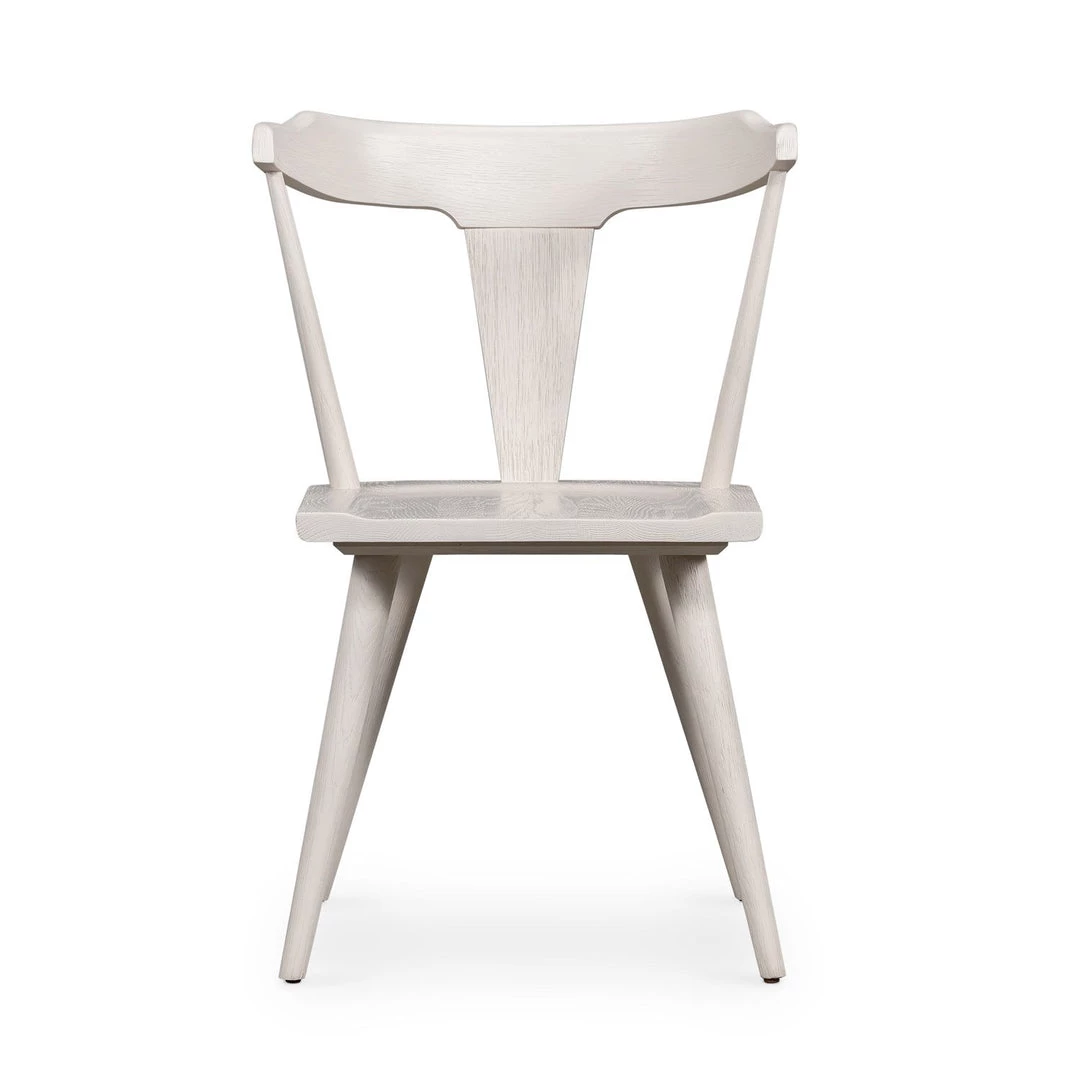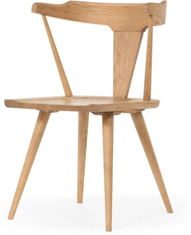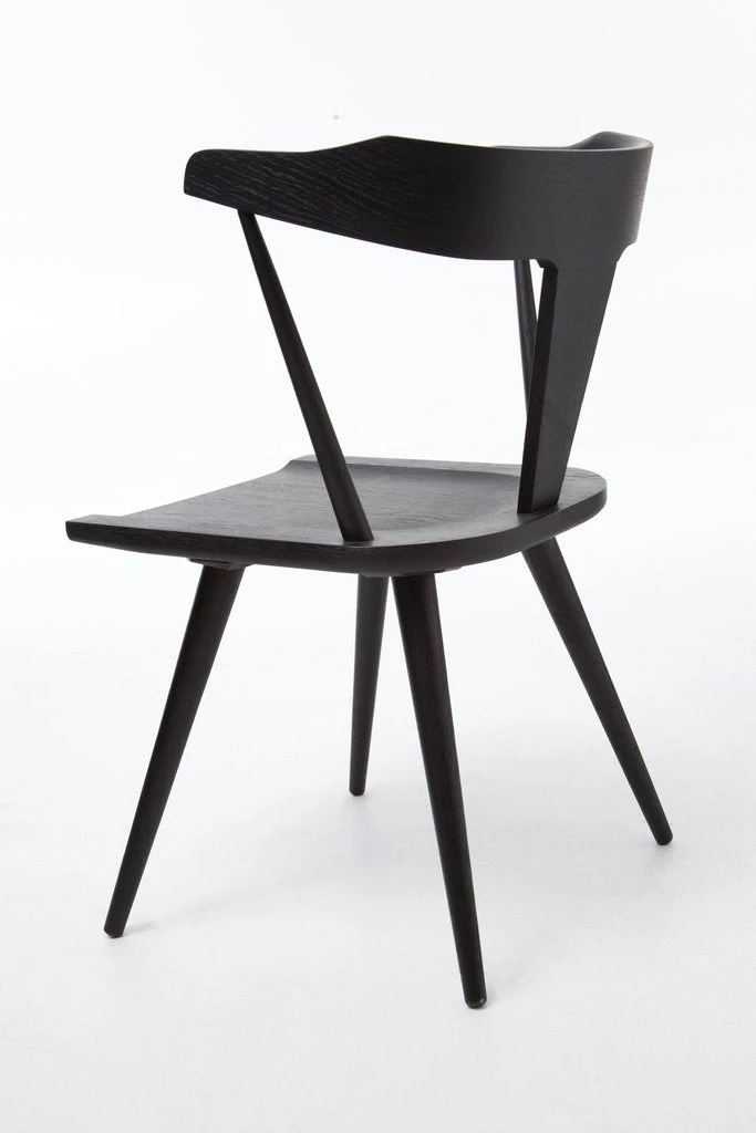 This new take on the mid-century Windsor chair has a bowed, sculptural silhouette. A soft black, off white or sandy oak finish adds movement to the wood by highlighting the natural grain of weathered oak.