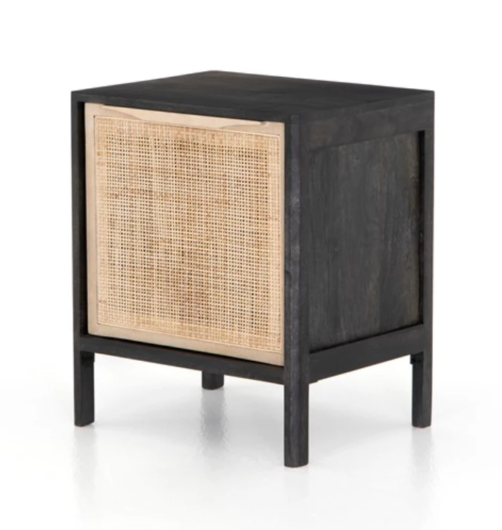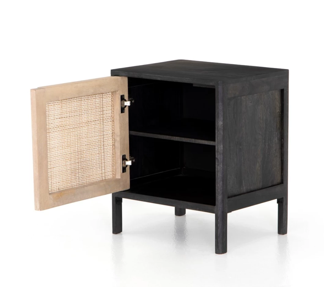 Black-washed mango frames inset woven cane, for a textural look with eye-catching contrast. Roomy interior brings extra storage space to the bedside, with a removable shelf for clever convenience.