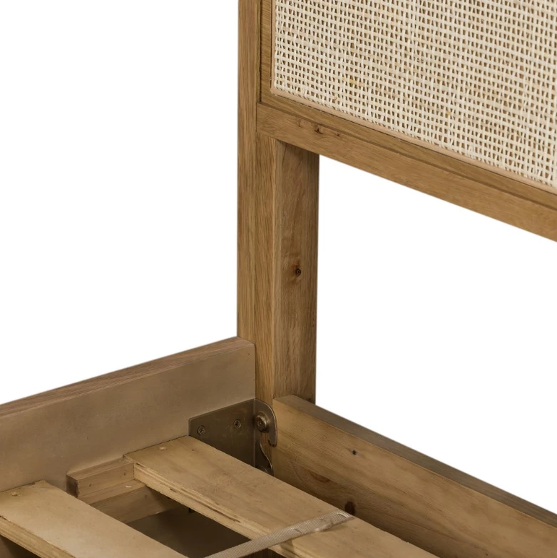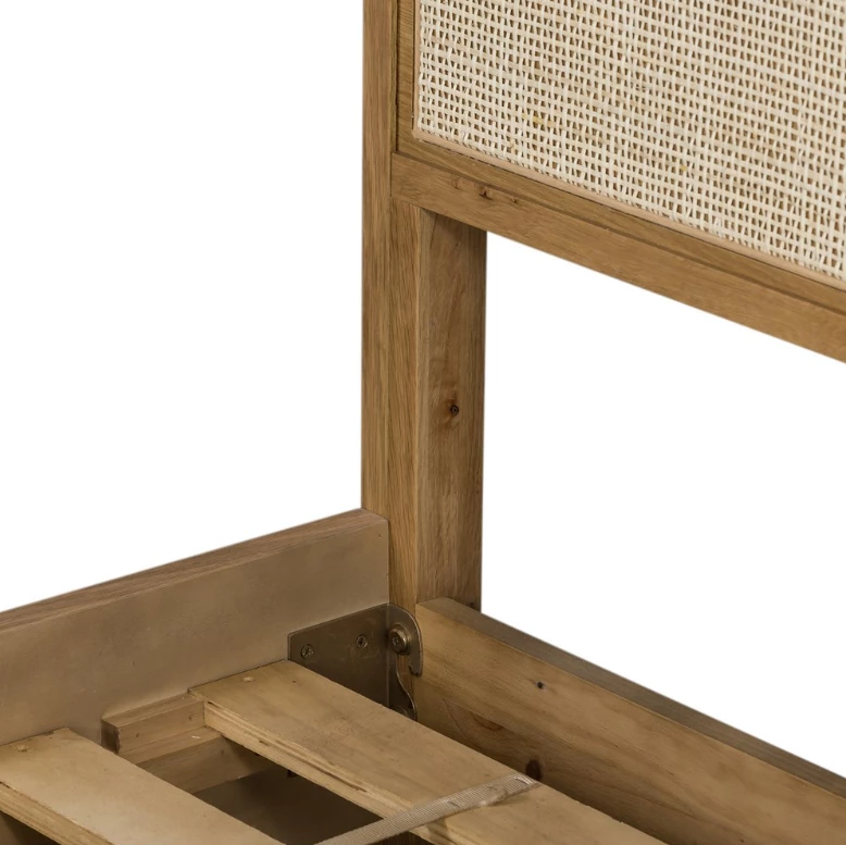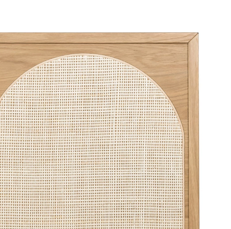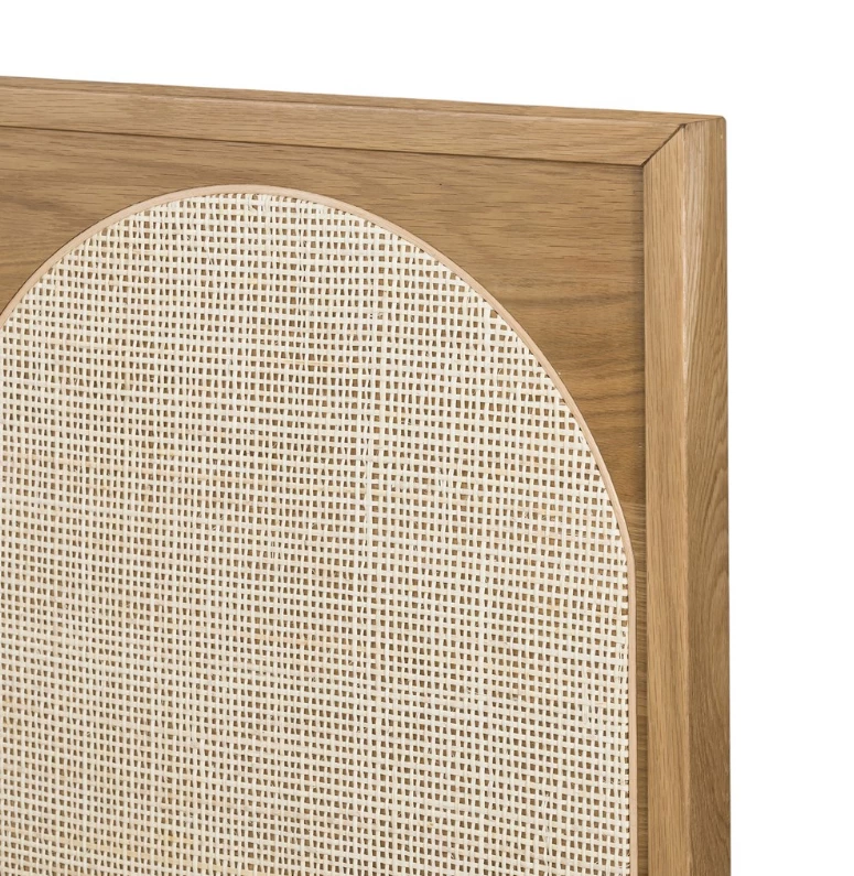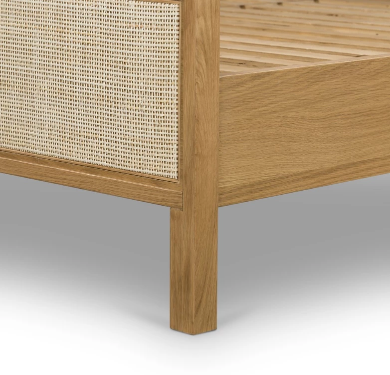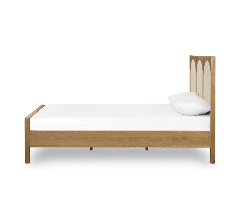 Au naturale. A light oak bed frame features wood-backed cane arches and panel footboard detailing, for a soft, neutral look with lasting modernity.
