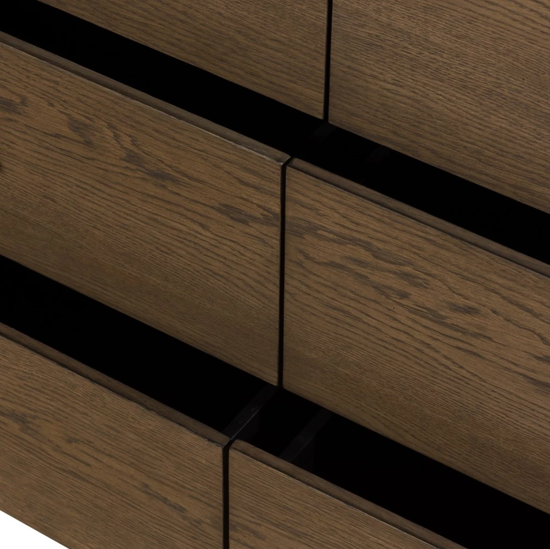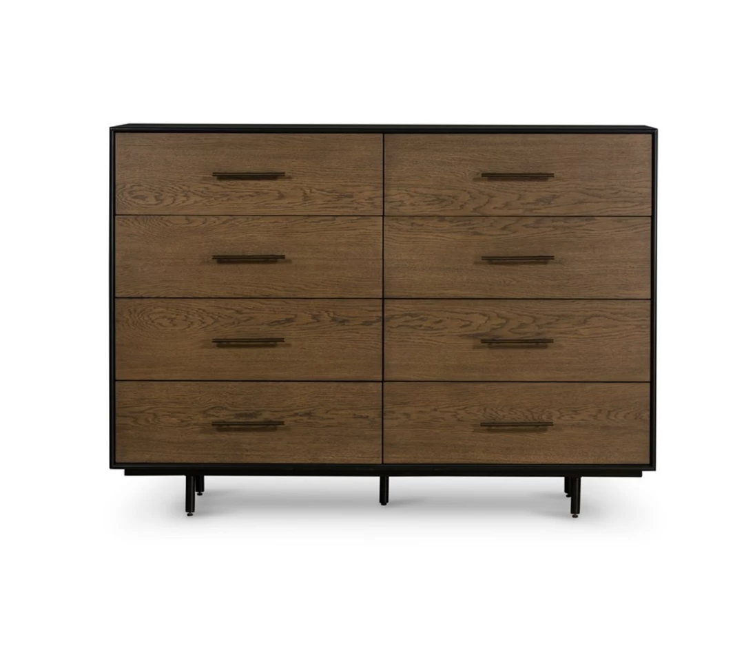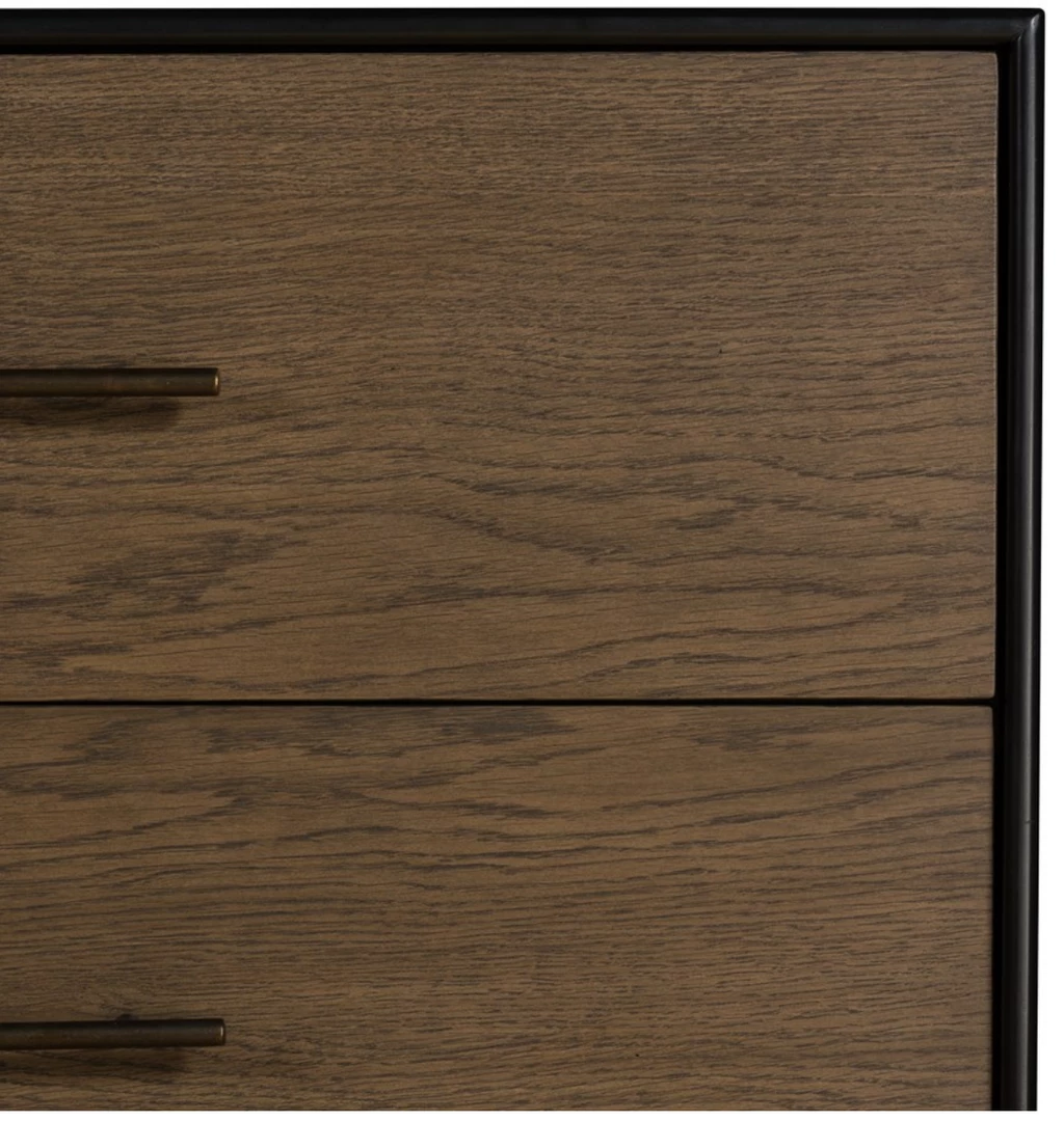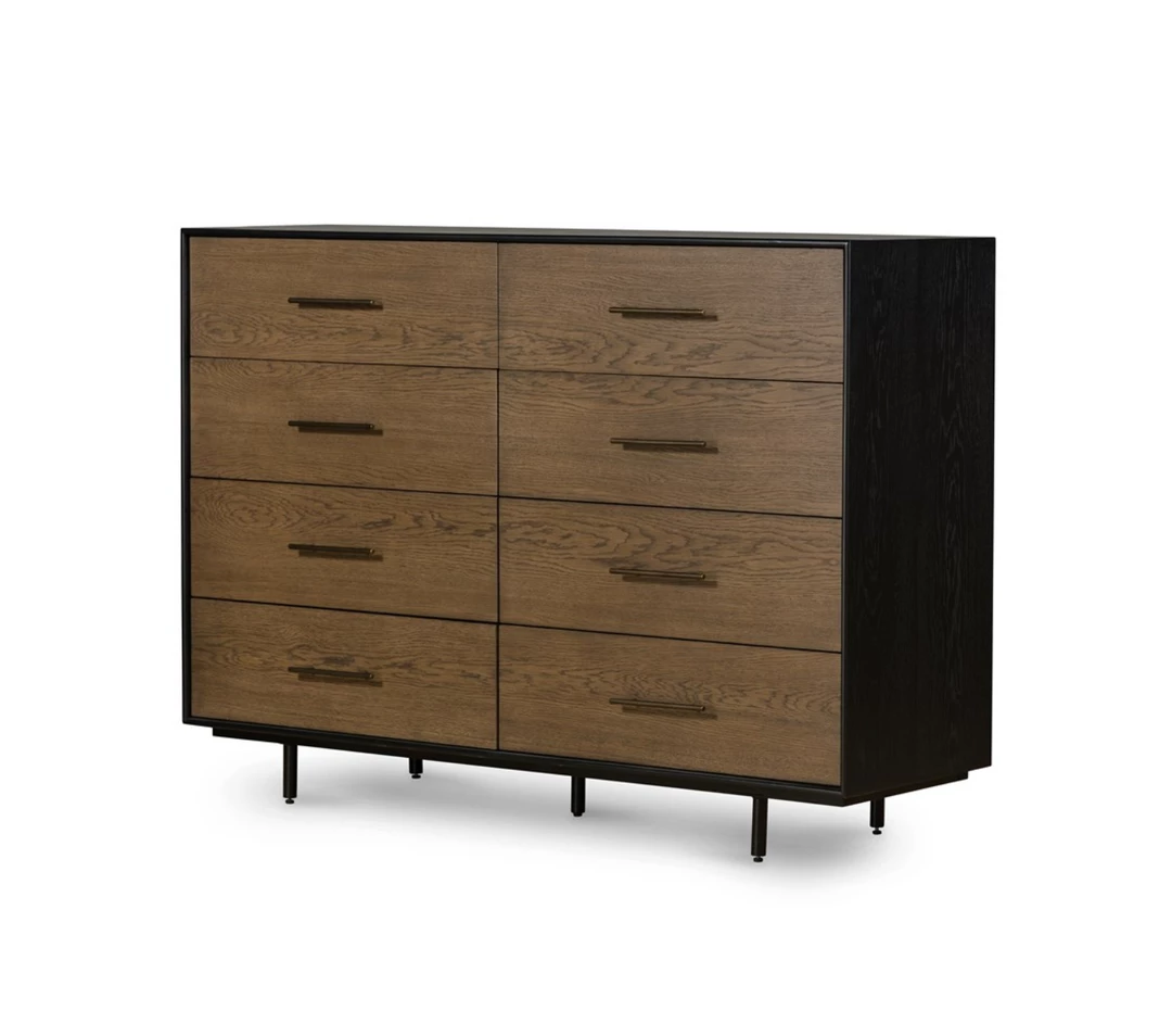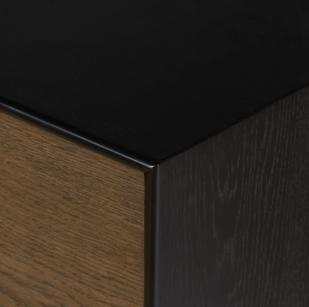 Warm oak and black finish with modern pulls