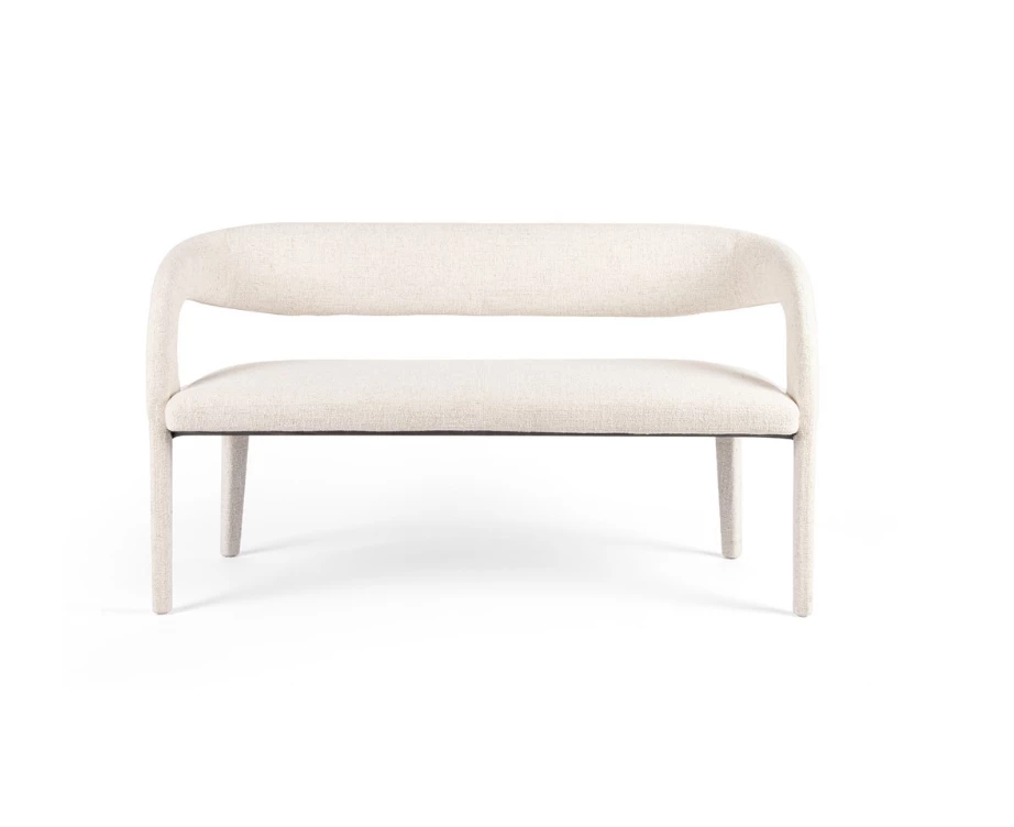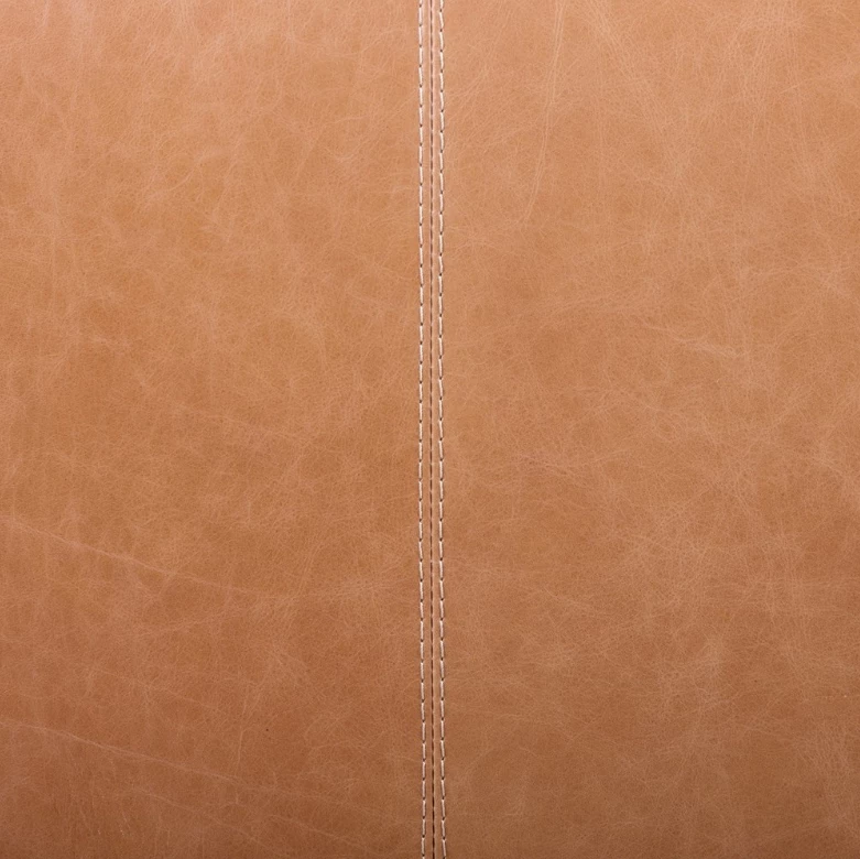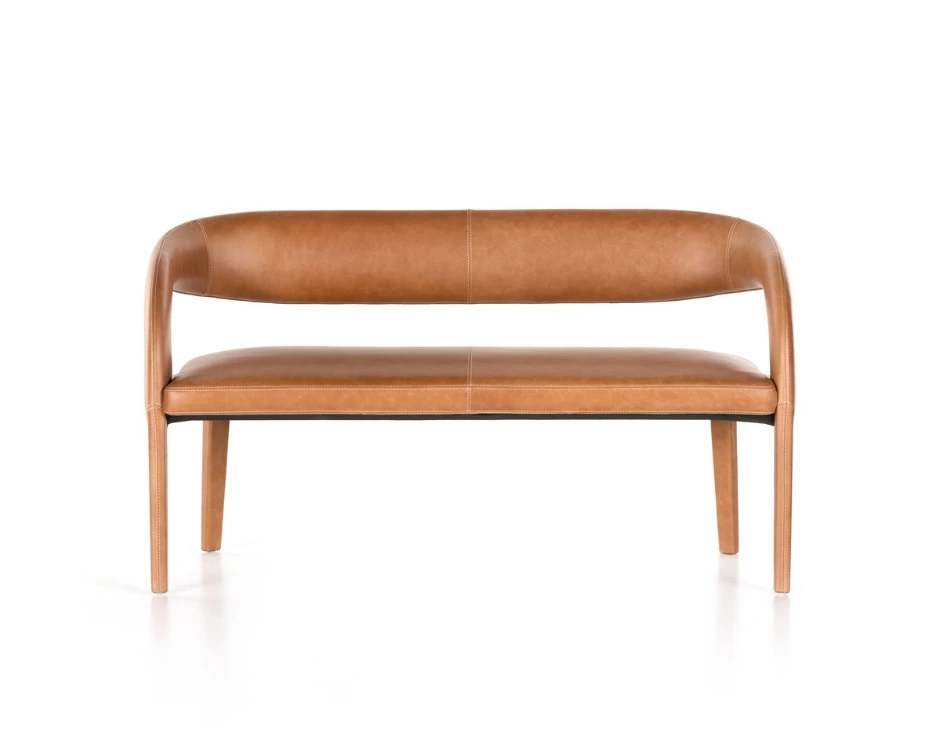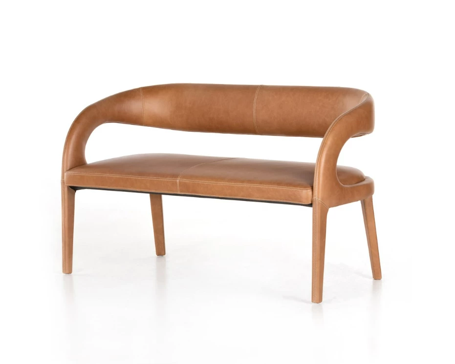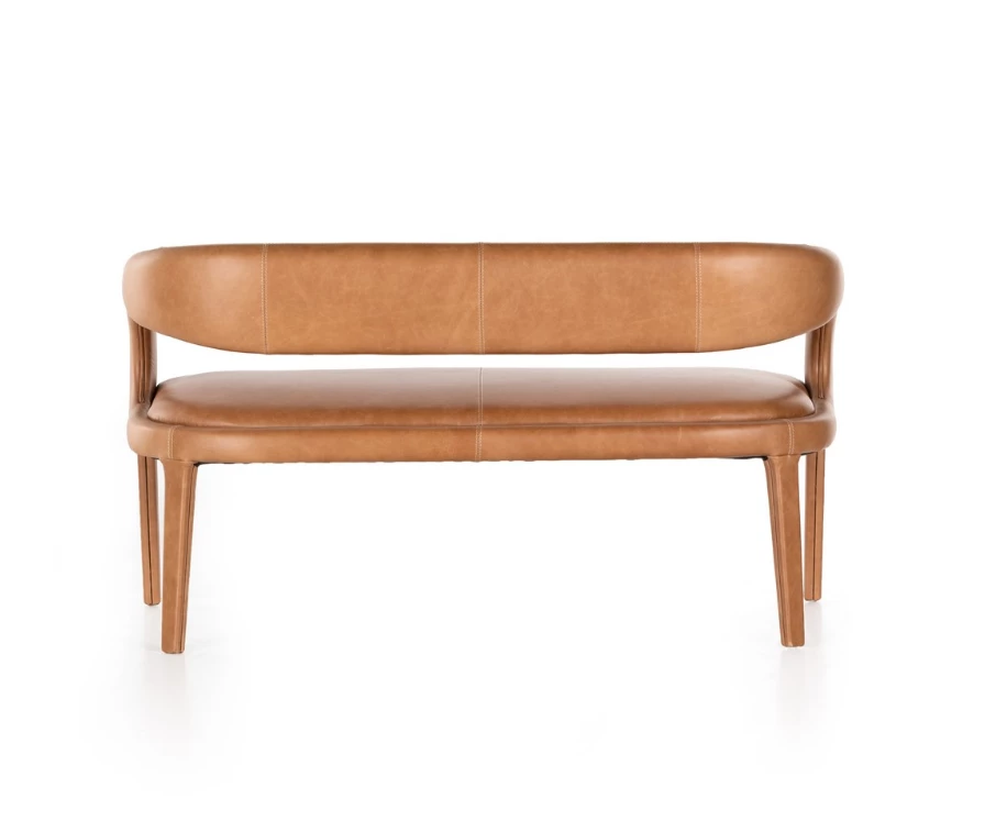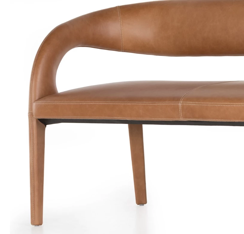Strike a pose. Well curved and finely sculpted, tan top-grain leather exclusive to Four Hands makes for a unique and shapely addition to the modern dining room.