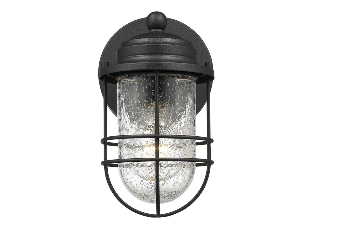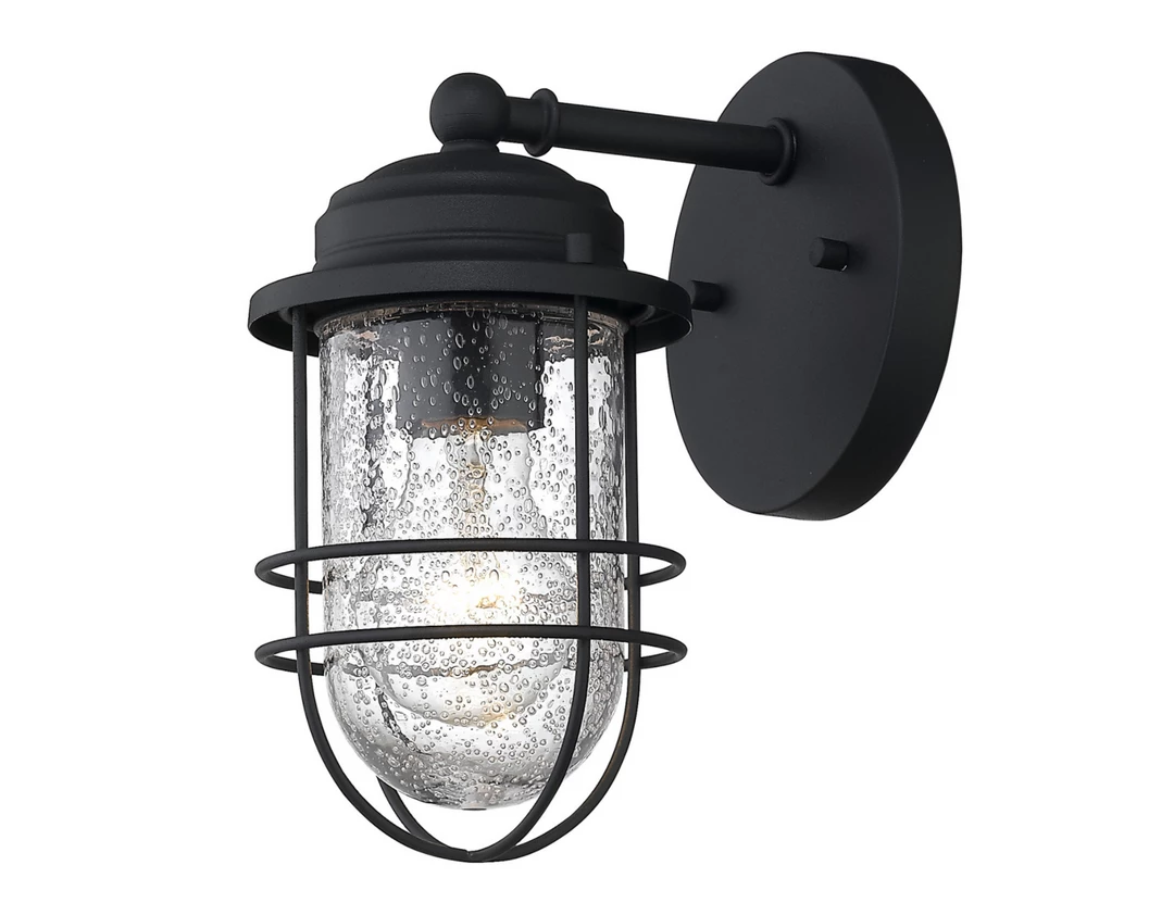 Nautical-inspired, Fisher is a collection of industrial fixtures to create your seaside retreat. Offered in multiple textured finishes, the New England style is enhanced by protective cages and seeded glass that shield the fixtures bulbs. This outdoor fixture is wet-rated and is UV-coated to protect it from fading.