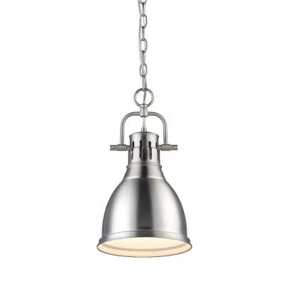 The Dunbar Collection is contemporary style with an industrial feel. The collection features a variety of simple, traditional silhouettes that are a nod to a bygone era. Transform the look of your room with these classic, vintage-inspired fixtures. A pewter plated and pewter metal shade finish This small, chain-hung pendant features a may be hung individually or grouped over a bar.