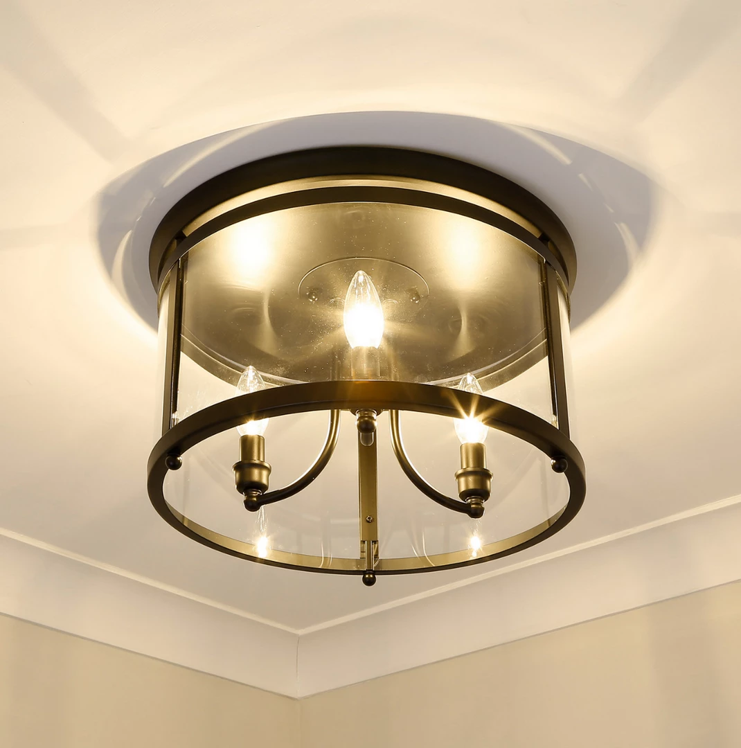The clean, streamlined design of the Riley collection makes it an instant classic. The simple metal frames house clear glass. This versatile style is fitting for traditional to modern interiors. Confidently hang this damp-rated fixture for ambient lighting in a bathroom, bedroom, hallway or living room.