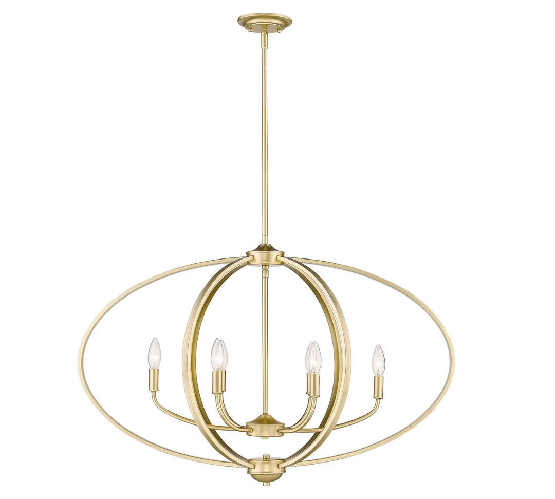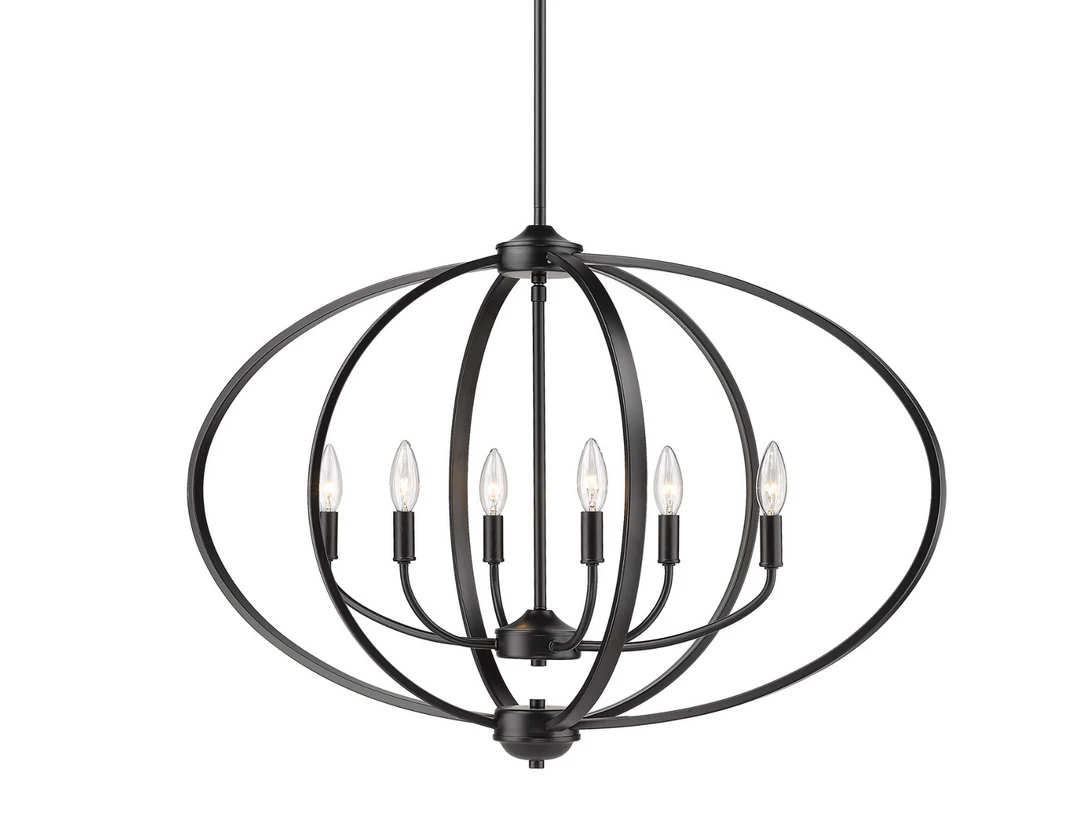 This transitional and industrial-chic design is ideal for lofts, farmhouses, and contemporary interiors. Curvaceous arms sit inside simple round frames. The extensive collection includes wall and ceiling fixtures. Fixtures may be purchased with or without metal mesh shades. The optional shades shield the exposed bulbs of these elemental fixtures. Available in multiple finishes, this elongated, oval linear pendant illuminates a kitchen bar, dining table, or similar area without interfering with activity at the surface.