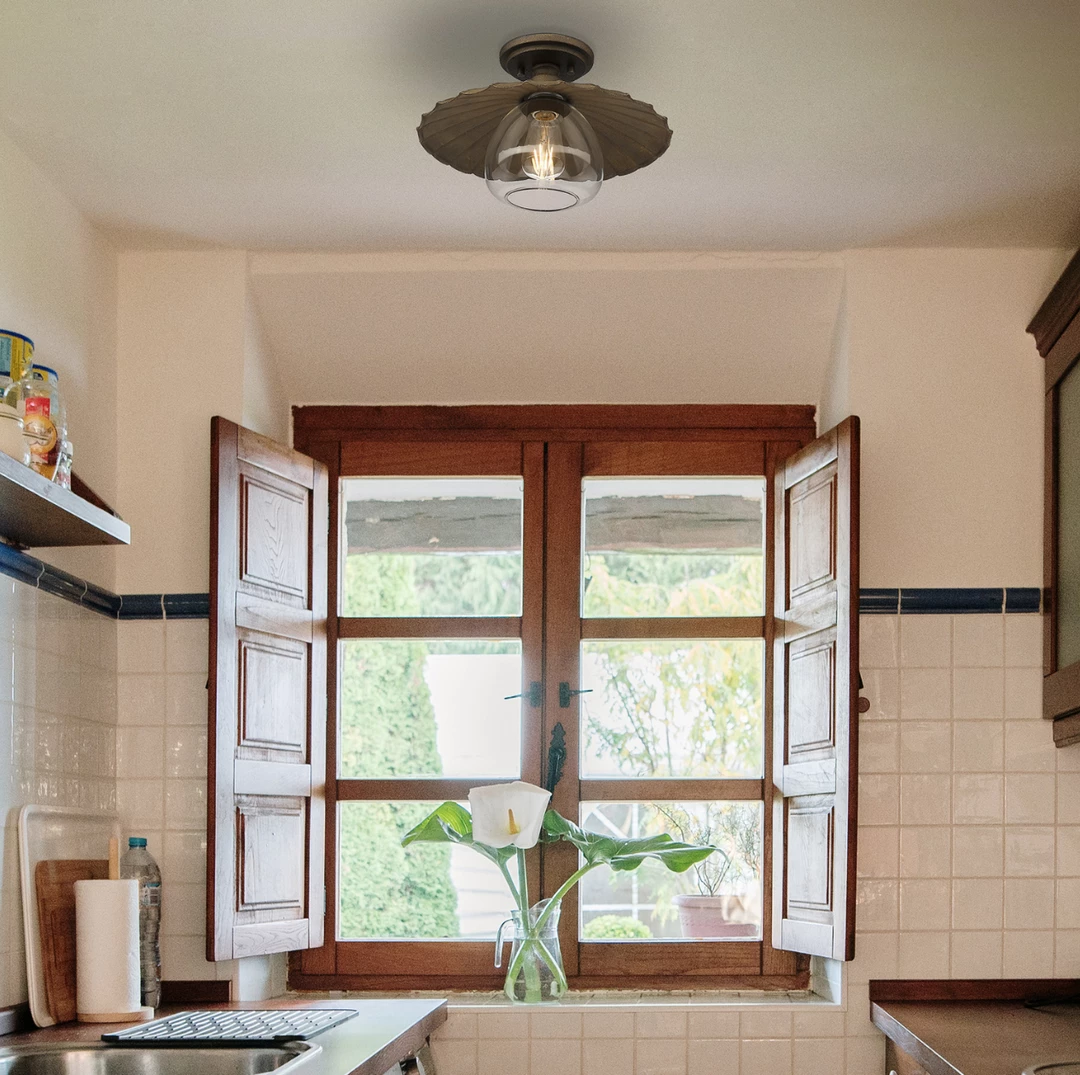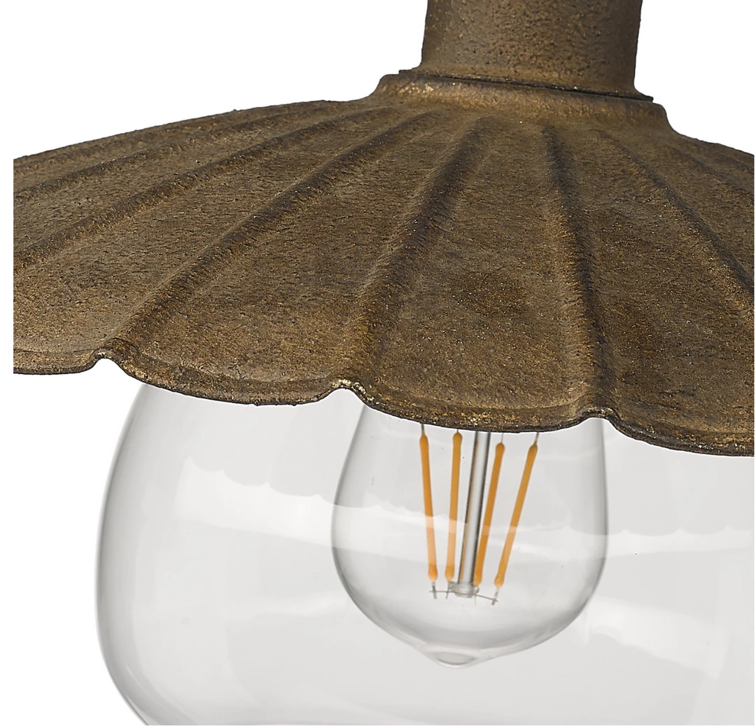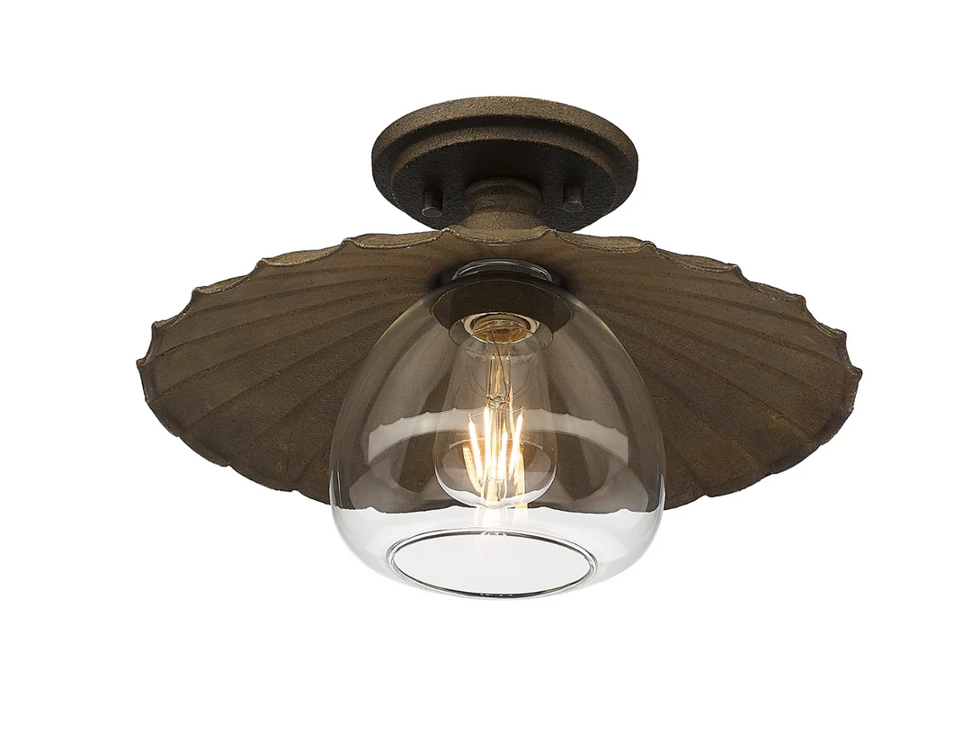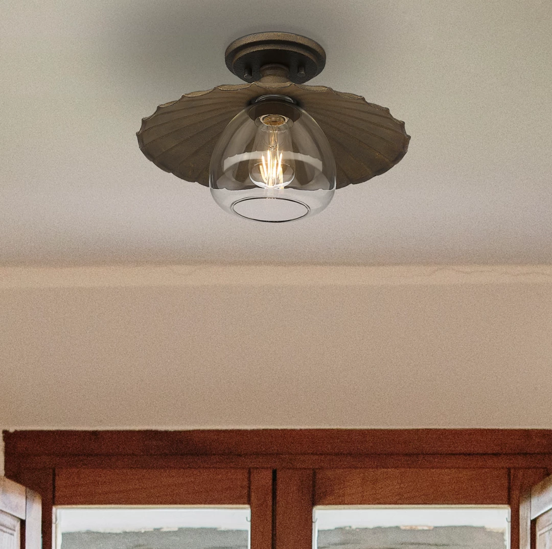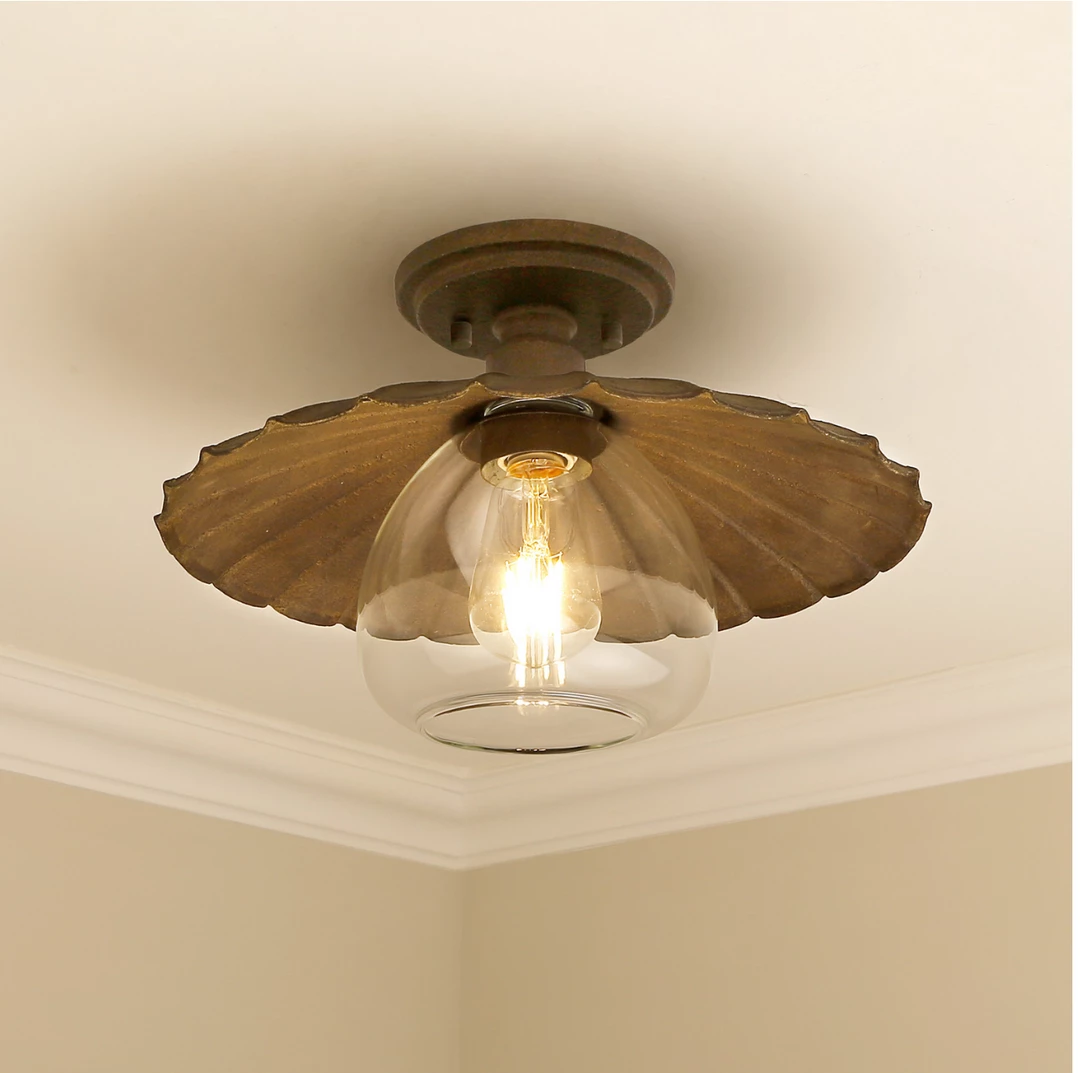 Mount the Monte collection on your ceiling. This series features scalloped metal shades that partially shield the sockets while clear glass encases the bulb, allowing widespread illumination. Delicate in look and sturdy in construction, these beautiful vintage-inspired fixtures are perfect for adding understated glamour to rustic or refined spaces. The multi-layered Dark Rust finish adds the old-fashioned charm needed for a cottage or farmhouse look.