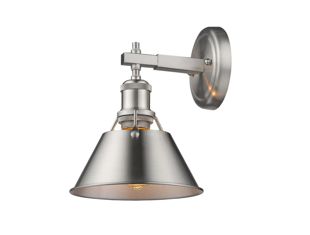 Wesley is an extensive assortment of industrial style fixtures. The beauty and character of the collection are in the refined details. This transitional series works well in a variety of settings. Partial shades shield the eyes from possible hot spots, while the open tops tease onlookers with a view of the sockets and bulbs. The design allows light and heat to escape from above and below the metal shades, providing both task and ambient lighting. Edison bulbs are recommended to complete the vintage, industrial look of the fixtures. A choice-selection of finish and shade color combinations heighten the appeal of the series.
